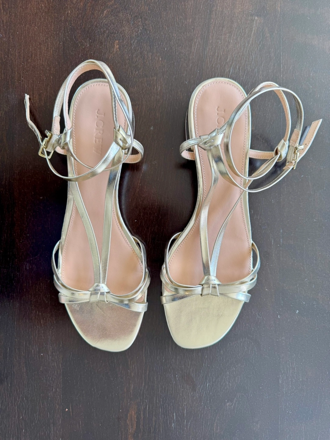 20Gold leather sandals. Low block heel. Double ankle strap closure. Worn once.