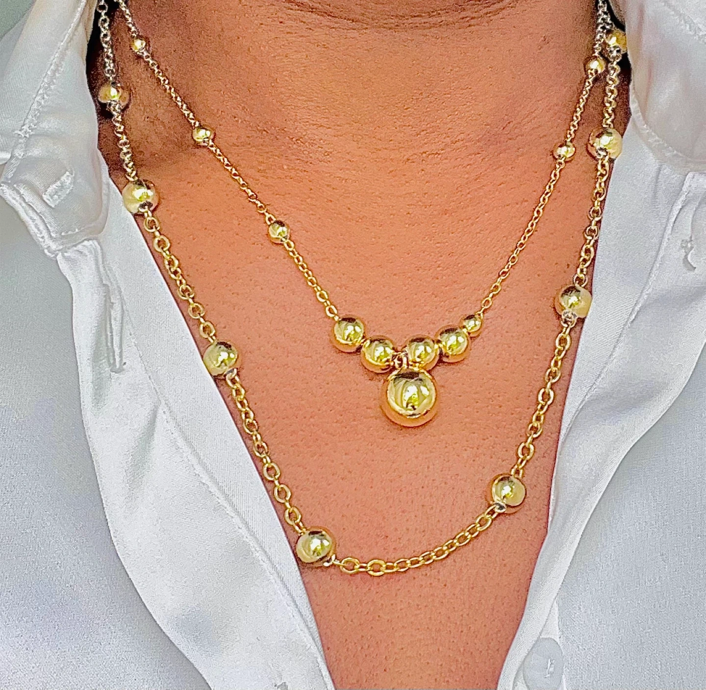70Beautiful gold-coloured layered necklace with ball accents. Perfect for adding a touch of elegance to any outfit! It's in great condition and ready for a new home