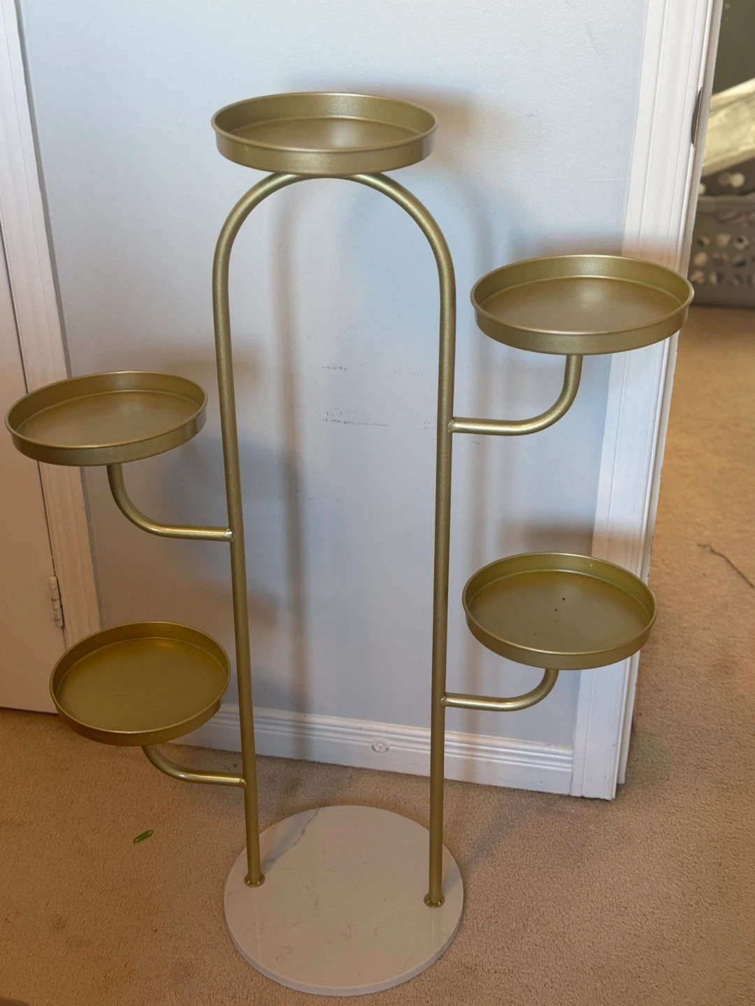 22This gold metal plant stand is perfect for displaying your favourite plants! It features 6 tiers, providing ample space for a variety of pots and greenery. It's in great condition and ready to brighten up any room
