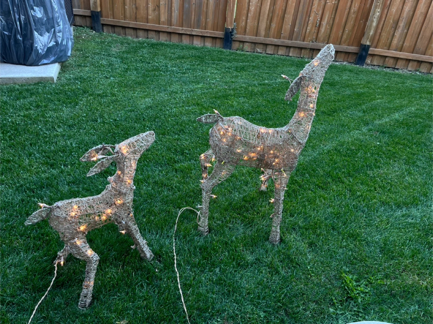 Selling these Gold Christmas Reindeer’s Both of the lights work on them One is 3 ft one is 2ft Message me for delivery inquiries Cash only Checkout my other listings for more great deals!!