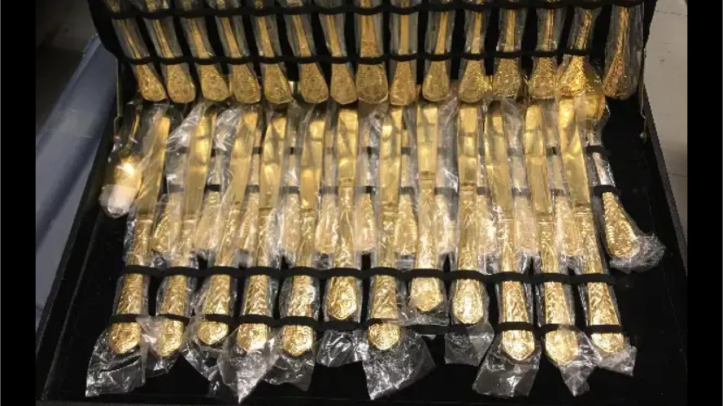 Selling a NEW dining cutlery, gold plated with over 50 pieces. Comes with the original leather briefcase but case is in rough shape. Been sitting in storage for 20 years.