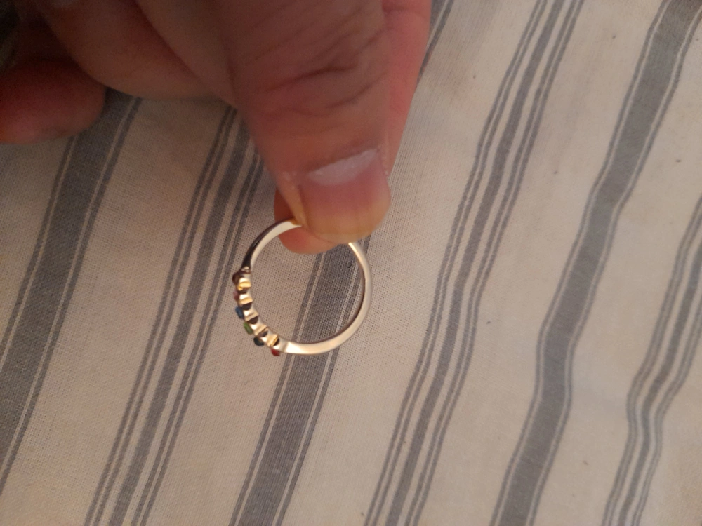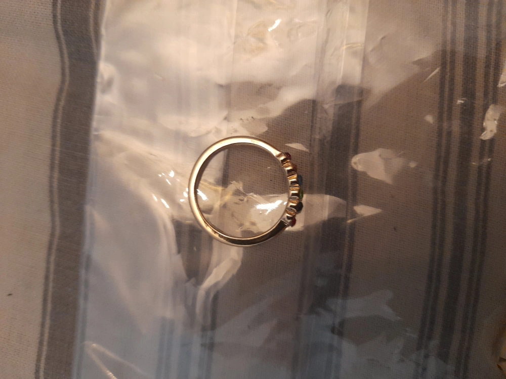 FREE a cute gold ring with colourful stones! It's in great condition and would make a lovely addition to your jewellery collection. size is unknown. this is costume jewelery. schedule a day and time before coming location is shown in listing.
