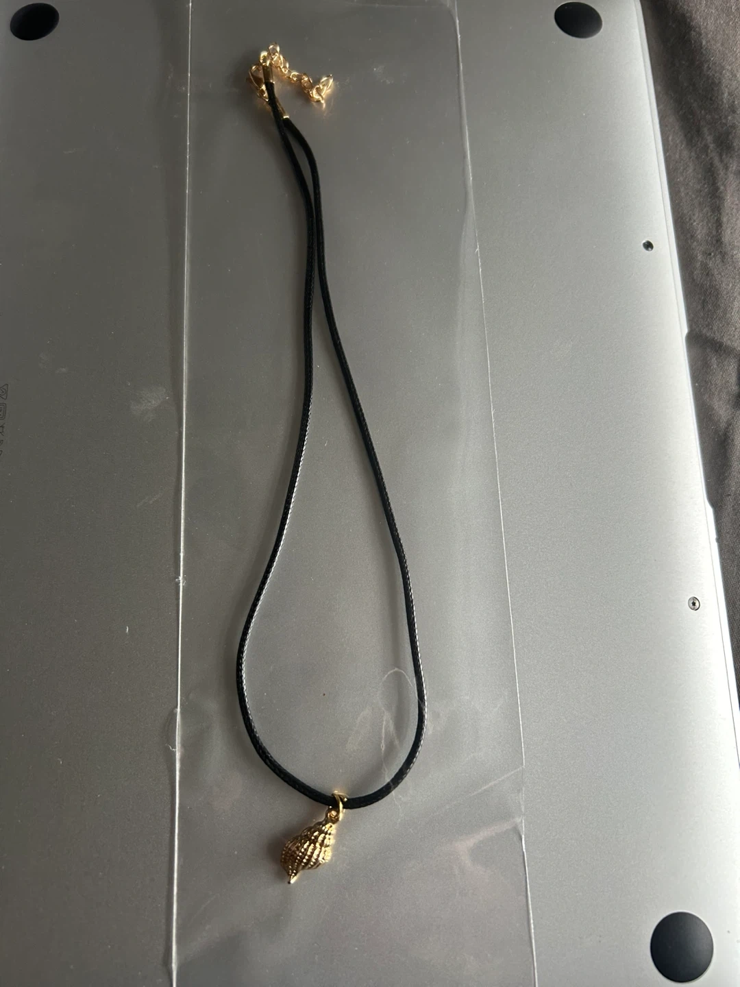 248Cute gold seashell pendant necklace with a black cord! It's in new and ready for a new home.
