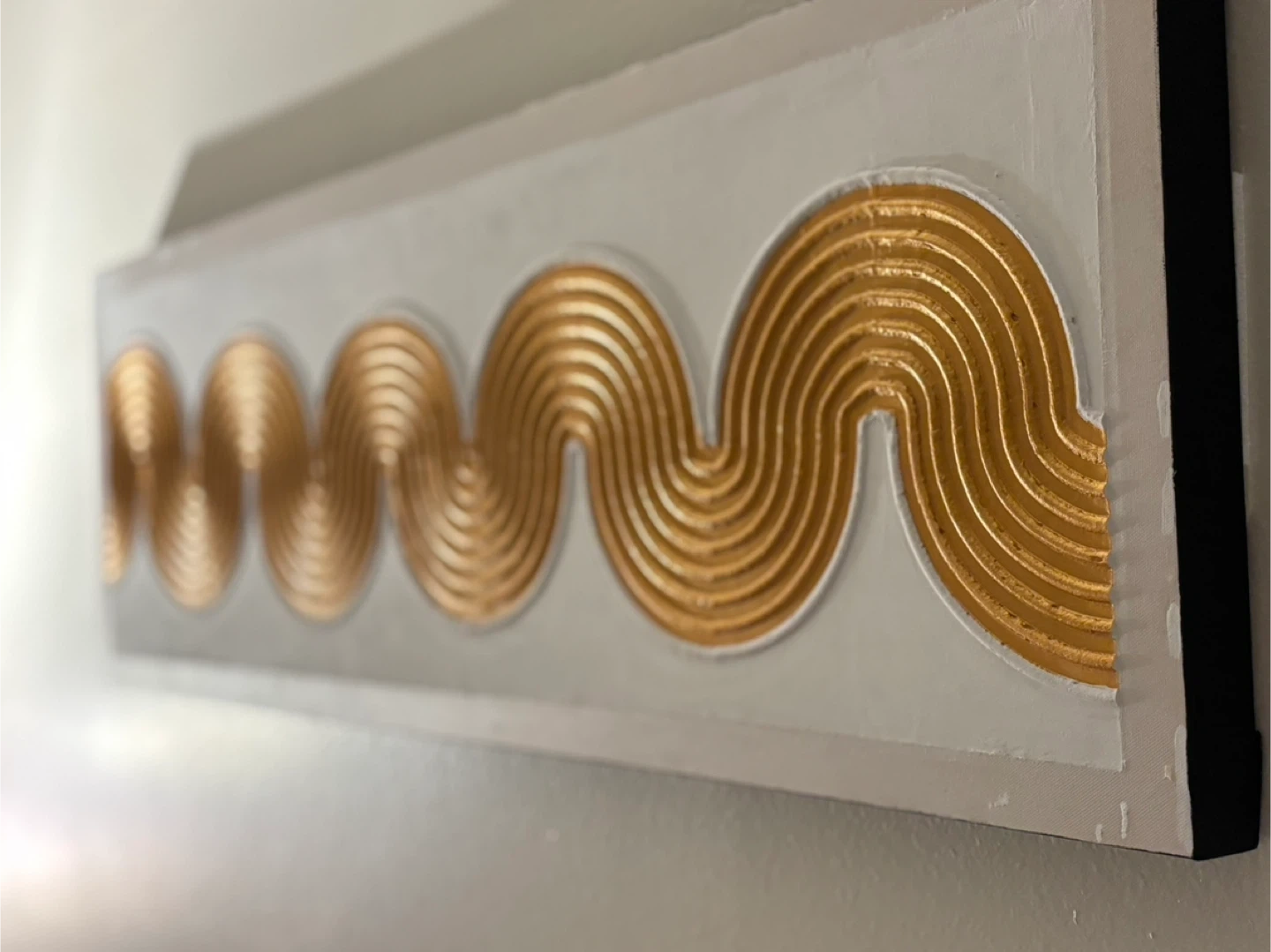 10Unique wall art piece featuring a gold wave design on a white and grey background. Great for adding a modern touch to any room 12 inches by 35 inches Asking $60 or best offer Smoke free and pet free home Pickup is in Brampton, major intersection is main and vodden