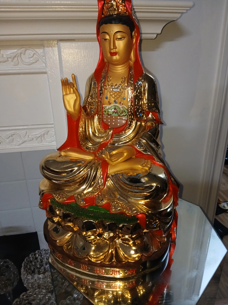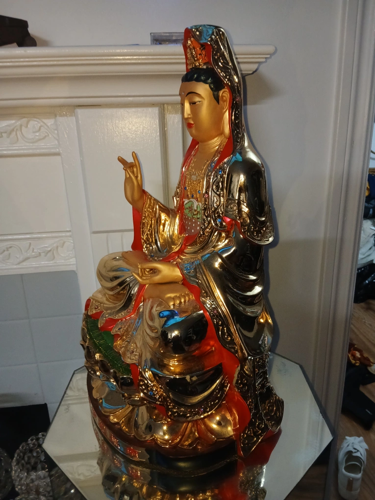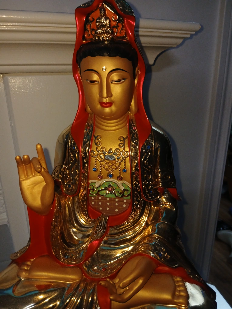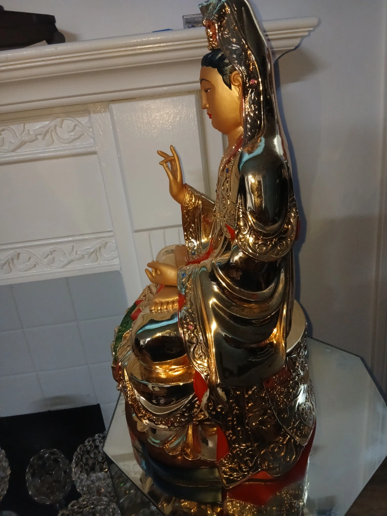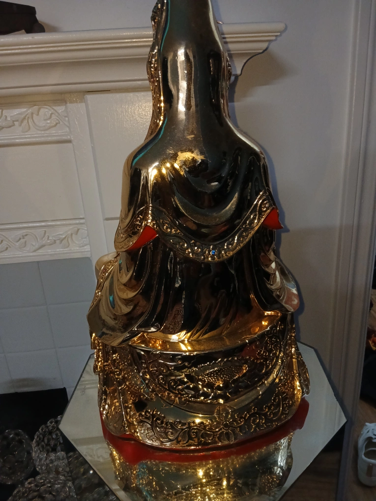 25Beautiful golden Quan Yin statue. It's in great condition and would make a lovely addition to any home