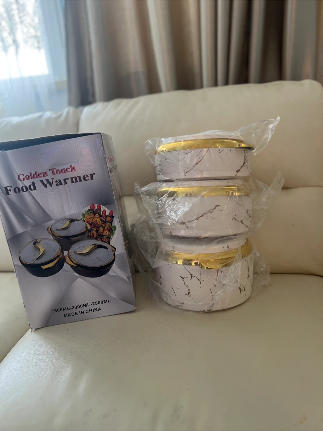 67Selling a brand new Golden Touch Food Warmer set! This set includes food warmers in sizes 1500ML, 2000ML, and 2500ML. Perfect for keeping your dishes warm and ready to serve