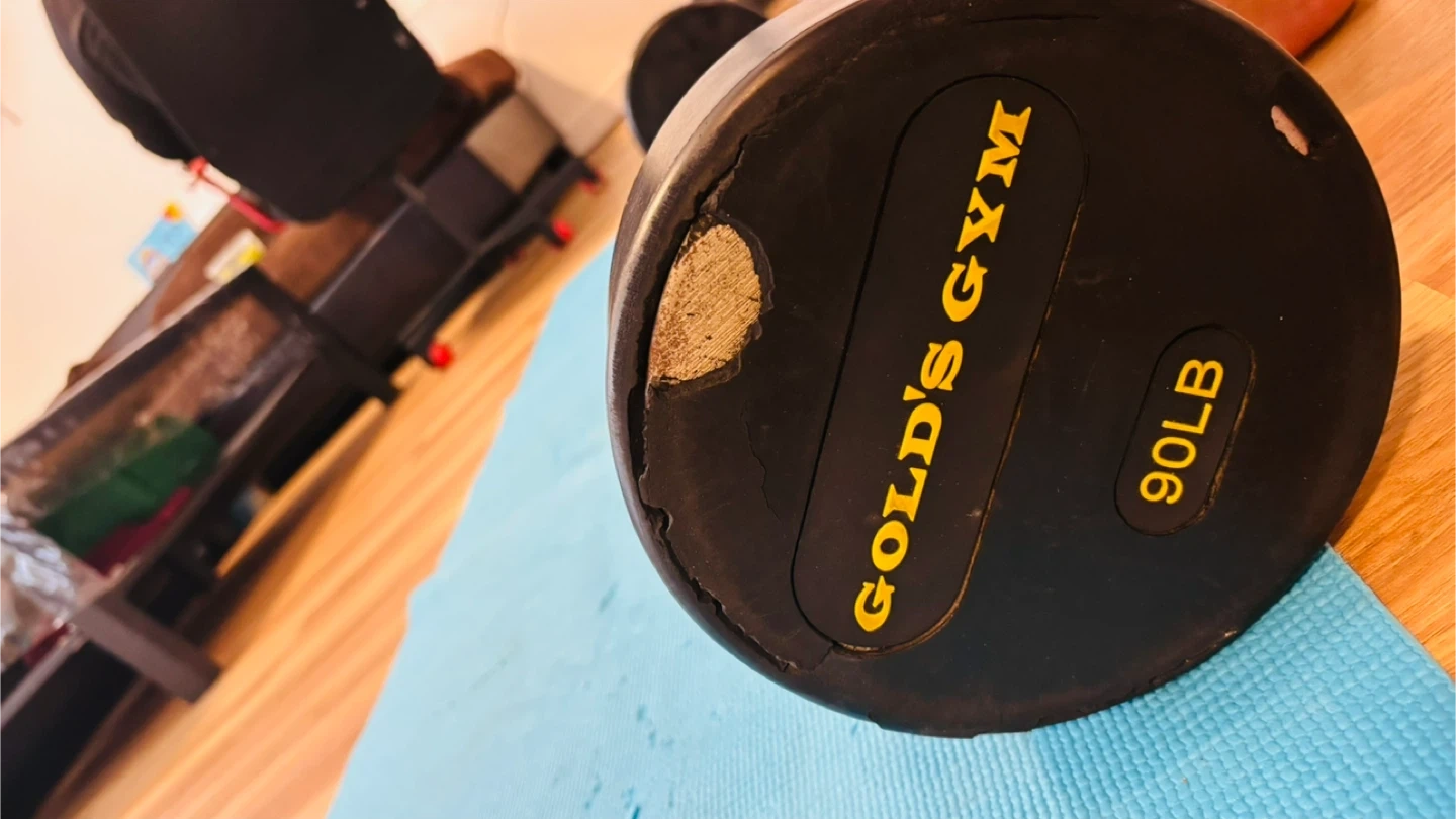 18Selling a Gold's Gym dumbbell, weighing 90 lbs. It has some signs of wear, as you can see in the photos, but it's still perfectly functional for your workouts!