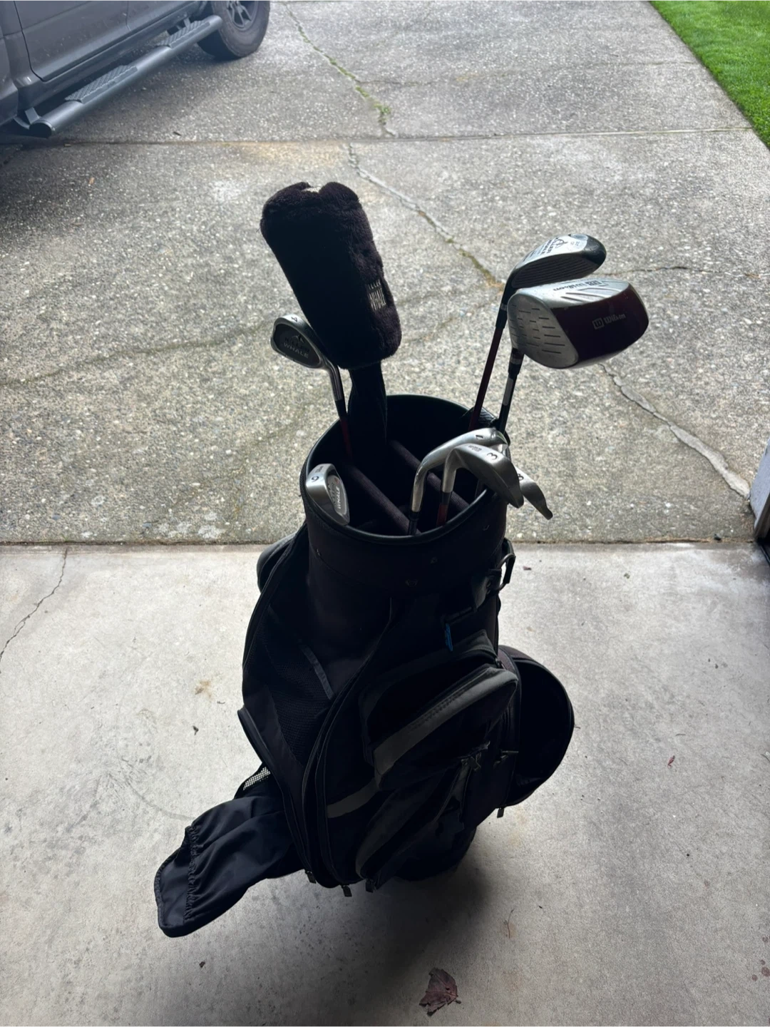 10Selling a set of golf clubs, including a Wilson driver. The set comes with a black golf bag for easy transport and storage. Perfect for anyone looking to get into golf or upgrade their current equipment!