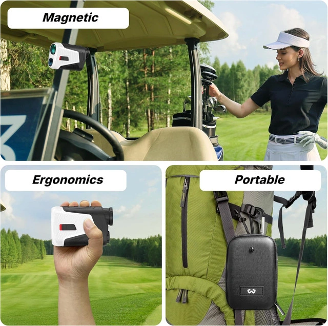 87WOSPORTS Golf Rangefinder with Slope, Ultra-Clear Red OLED Display, 1200 Yards, 7X Magnification Laser Range Finder, Magnetic/Flag Pole Locking Vibration. Cash and pickup only. Conveniently located near OCAD, Art Gallery of Ontario, and St. Patrick Station. Brand Wosports. Batteries included. Colour White. Material Plastic. Sport Golf, Hunting. Item weight 200 Grams. Product Dimensions 12.1L x 4W x 7.9H Centimetres. About this item: OLED Red Display: Unlike traditional LCD screens, the rangefinder features an Adjustable Brightness OLED red display that provides sharp, easy - to - read information, even in the dimmest of environments. Professional golfers choose OLED for split-second accuracy. Golf Rangefinder with Slope Switch: Slope Compensation Technology automatically adjusts distances for uphill/downhill shots, giving you true yardage, perfect for hilly courses, with a tournament-legal switch for USGA compliance. 7X Magnification: Our golf rangefinder brings distant flags 7 times closer, Flagpole Lock in 250 Yards, Flag Lock in 300 Yards, 85%+ High Transmission Lenses deliver brighter, sharper images —no more guessing, just confident swings. High-precision Range Measurement: Our golf rangefinder has a measuring range of 5-1200 yards, ±0.5 yd accuracy, with instant yard/meter switching. Multi-Mode Range Finder: M1 Range Mode (measure the straight-line distance, height, angle). M2 Non-slope Mode (Flag Locking and Vibration, displays the straight-line distance only). M2 Slope Compensation Mode (Flag Locking and Vibration, displays the line-of-sight distance, angle of inclination, and slope compensated distance), which is very suitable for golf beginners. Golf Range Finder Magnetic: Built-in magnetic stripe makes this compact golf rangefinder easily stick to any golf cart,clubs or metal object, The weatherproof grade of the golf rangefinder is IP54. It can also be applied to outdoor activities, hiking, engineering and hunting.