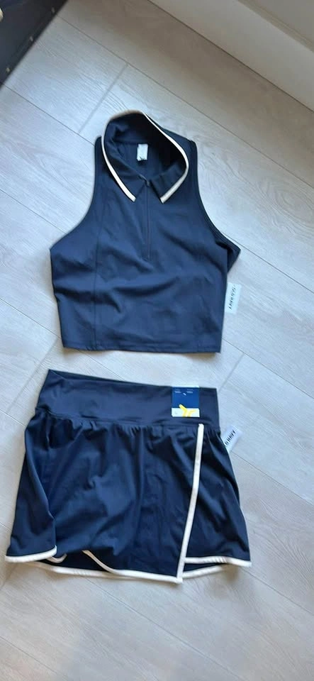 10Brand new matching set. Never worn, tag still on. Skirt is M, top is L. Navy blue with white detail. Skirt and cropped razorback. Can be used for golf or tennis. Pick up only. Regular price $80 plus tax