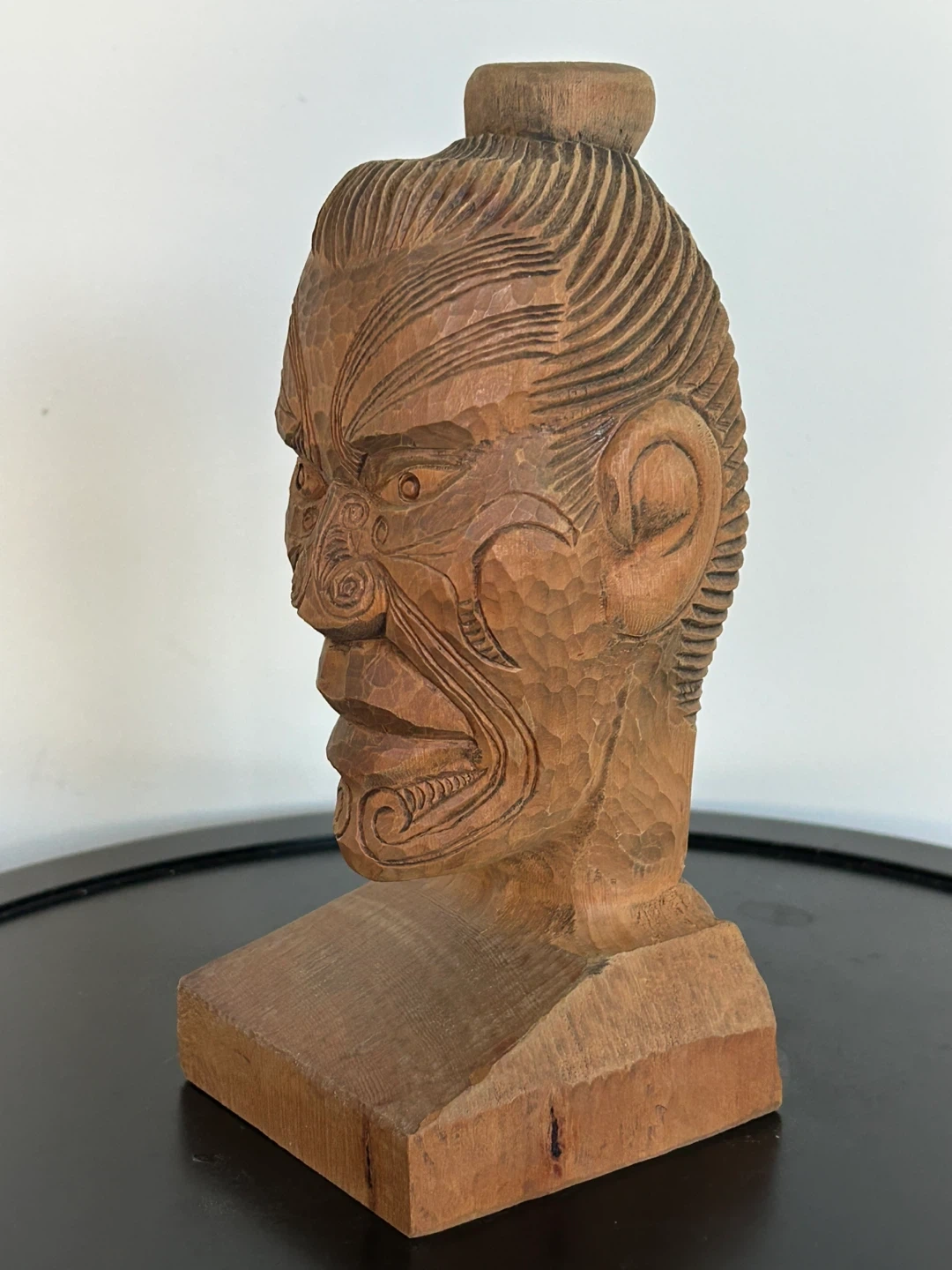Vintage Māori Hand-Carved Wood Bust – Signed