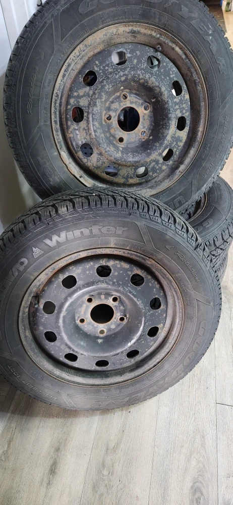 25Selling a set of Goodyear winter tires mounted on rims. They have been previously used and show some wear, as seen in the pictures. Great for getting through the snowy months! Used for 2 seasons