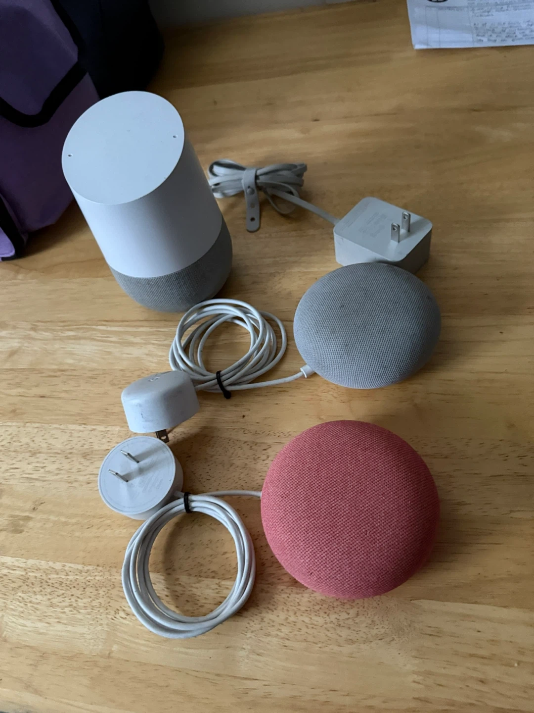15Large google home - $40 Mini Pink - $25 Mini Gray - $25 Take all for $80