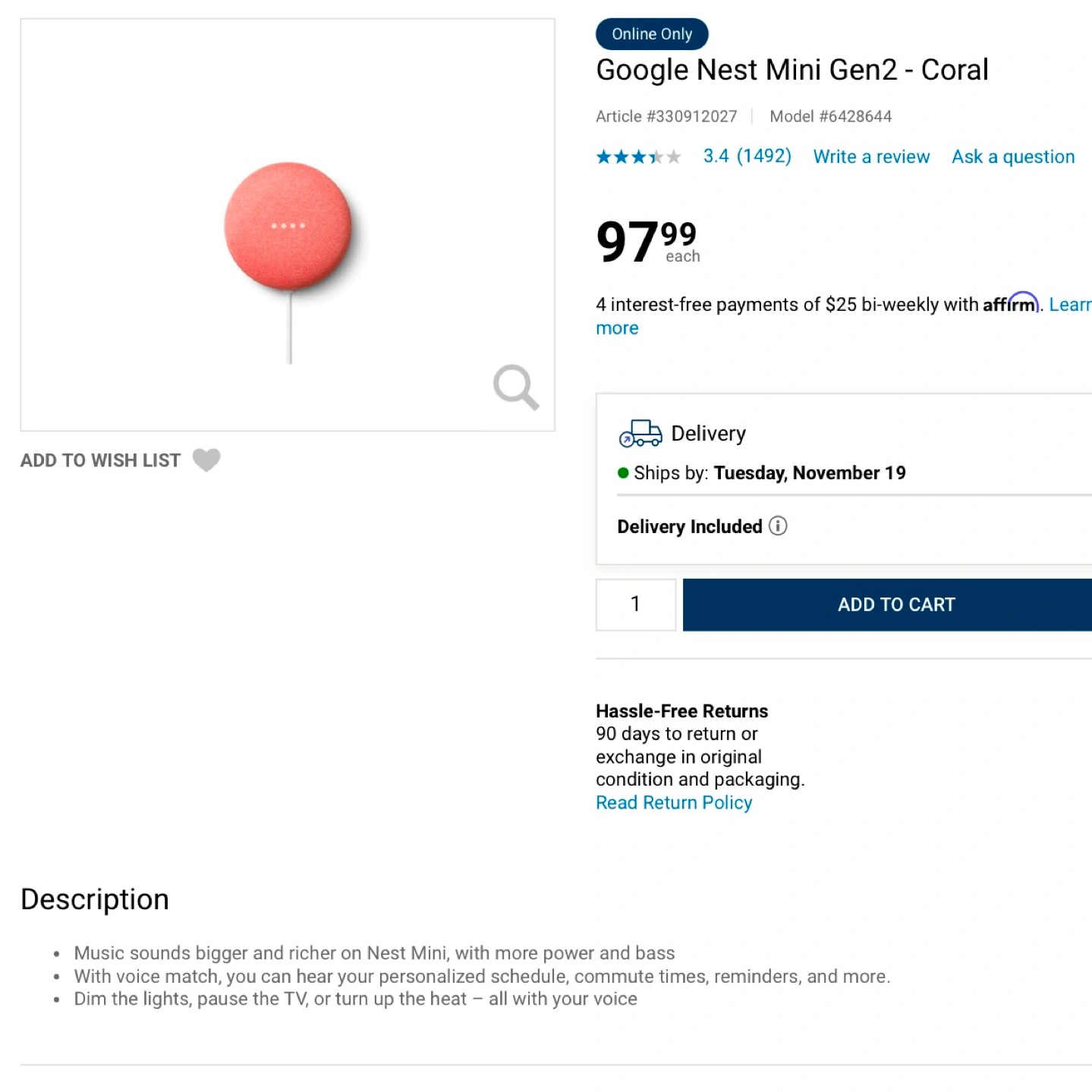 20Second generation smart speaker. Coral colour. Includes power cord.