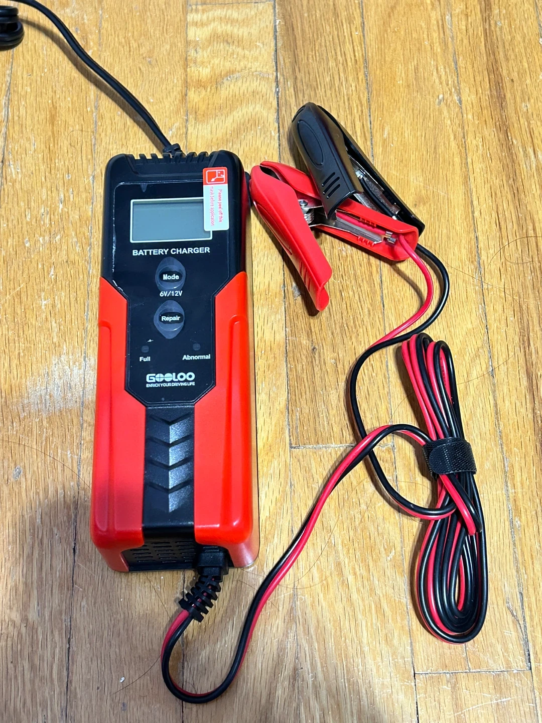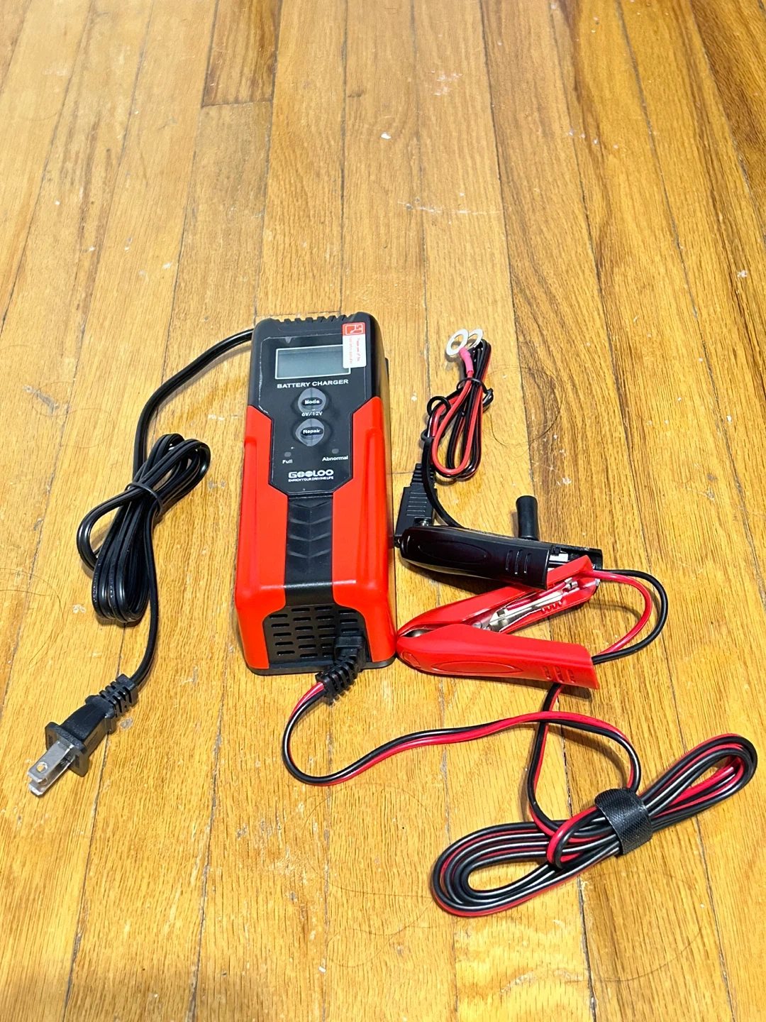 Selling a Gooloo battery charger! It is new and in the original packing and comes with everything you see in the photos, including the box. It supports both 6V and 12V batteries and has a repair function. Perfect for keeping your car battery in top shape!