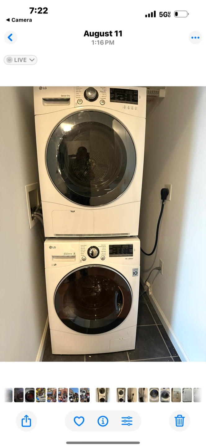 Selling an LG stackable washer and dryer set. It's in very good working condition and ready for a new home! Great for saving space in smaller apartments or laundry rooms. Feel free to reach out if you have any questions or would like to see it in person