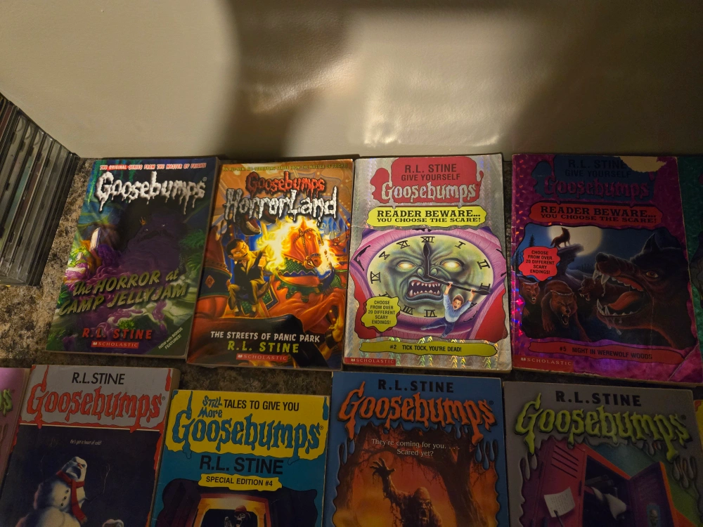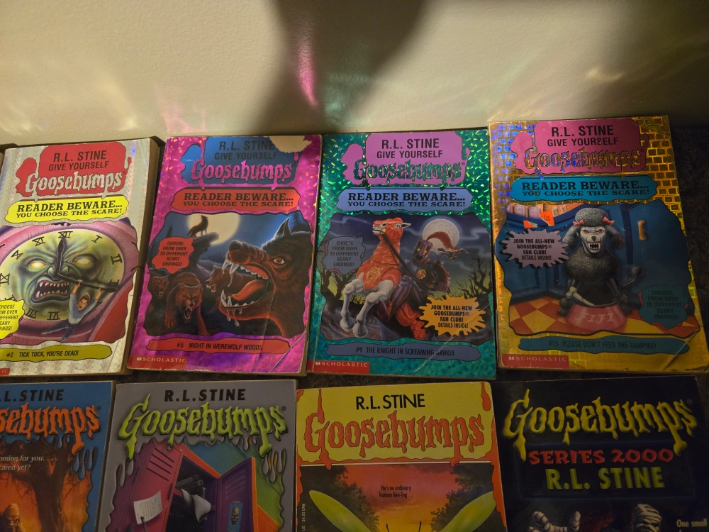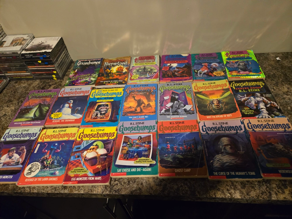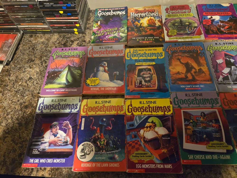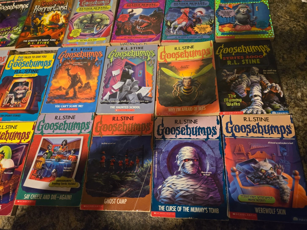 Selling a collection of Goosebumps books by R.L. Stine! Perfect for young readers who love a good scare. Great for kids and adults alike Dive into nostalgia with this lot of Goosebumps books, perfect for young and old horror fans alike! This collection includes a variety of titles from the original series, offering thrilling tales and spooky adventures. These books are used and do show some wear, but are in good condition for reading. Take lot for 75 or best offer. If the ad is up, the books are available! So don't wait, these stories are dying to be read!