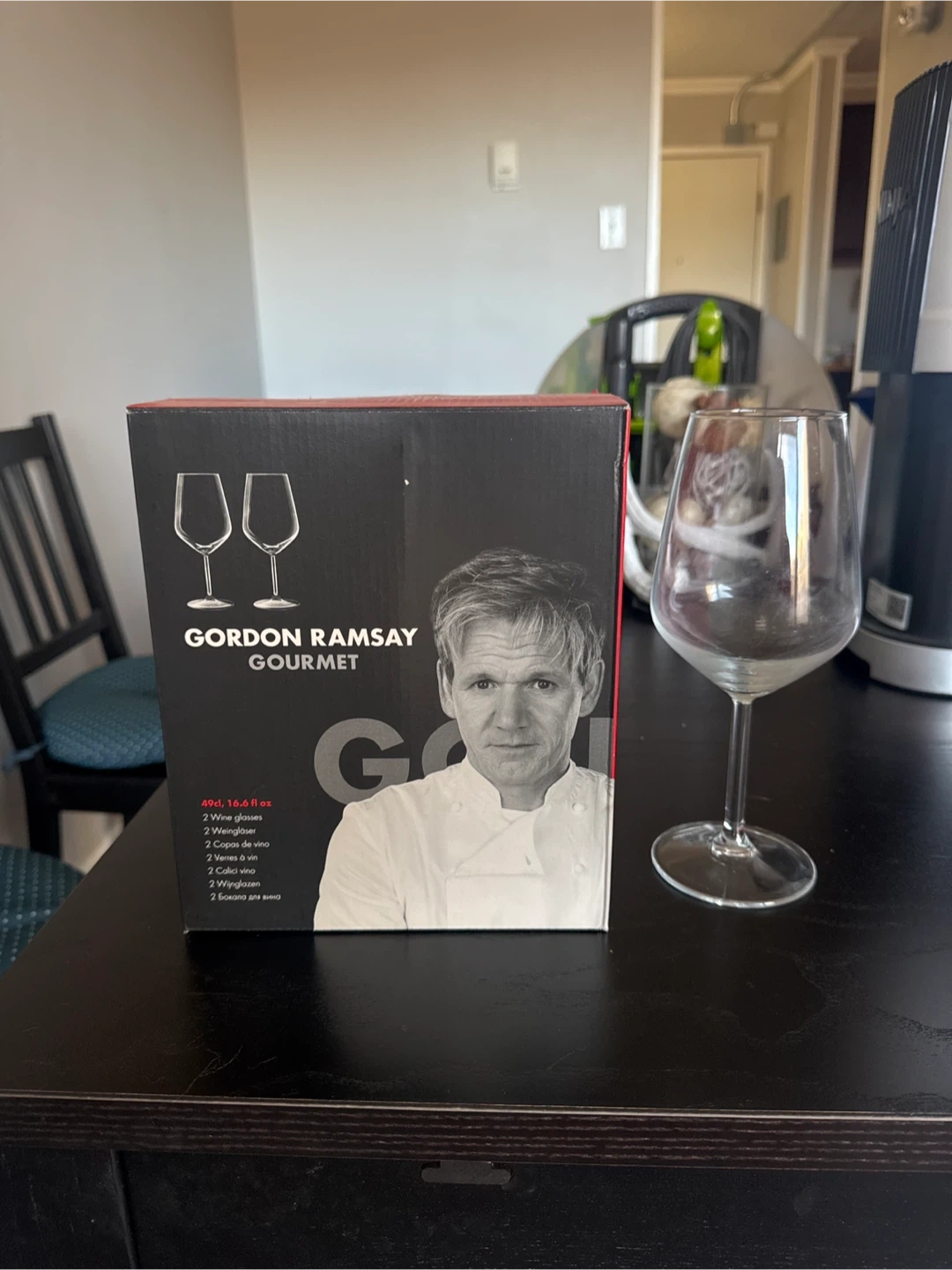 26Selling a set of 2 Gordon Ramsay Gourmet wine glasses! The box indicates they hold 49cl, or 16.6 fl oz. Perfect for enjoying your favourite wines. One extra included. Pick up only T6E4B6