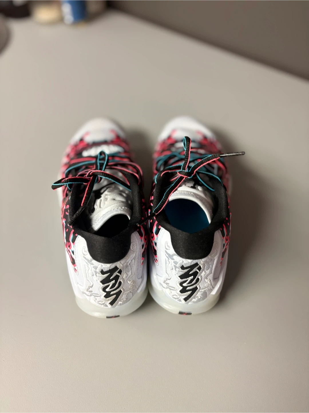 This air Jordan Zion 3 are looking for a new home! They feature a unique design with black, white, and pink accents. Perfect for adding a pop of colour to your athletic wear.