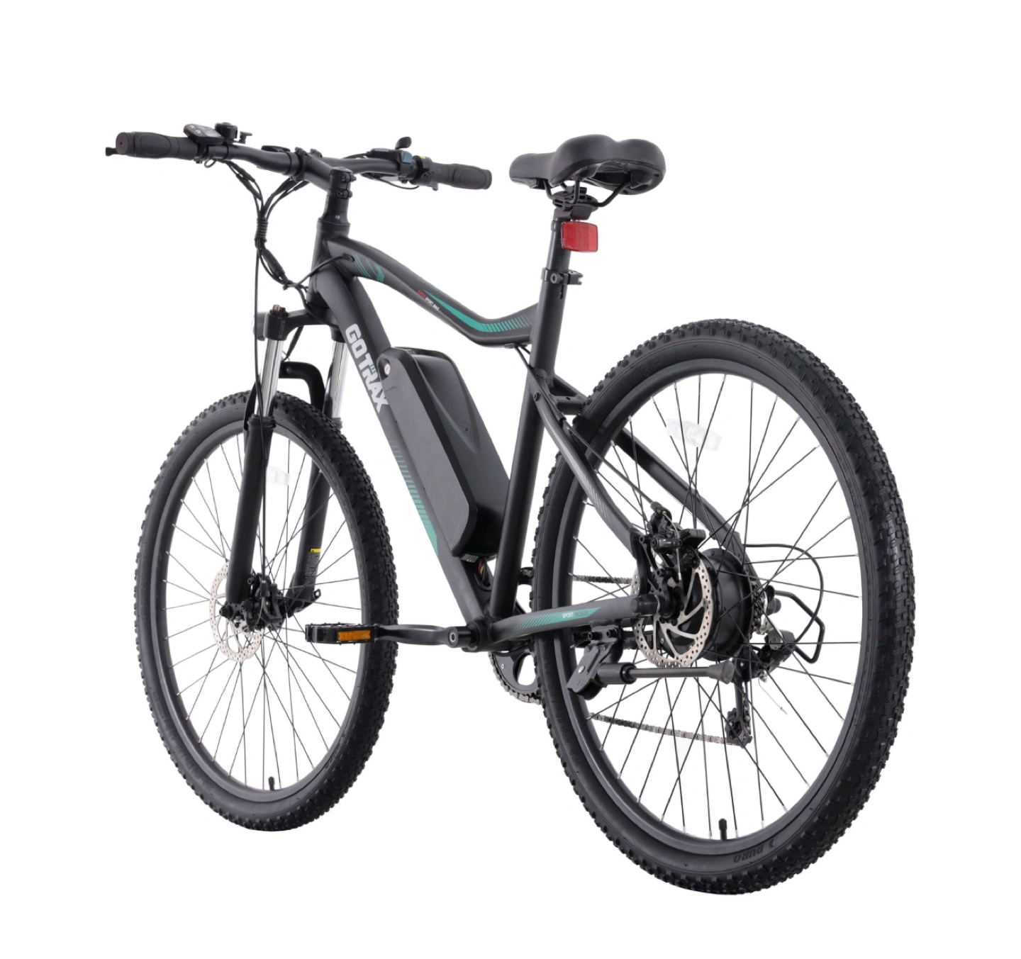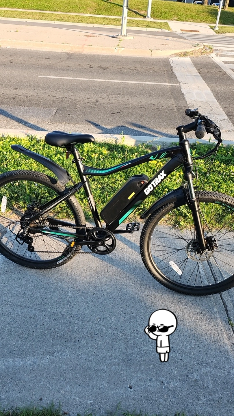 12Gotrax mountain e-bike E03 ✅- 35km range ✅- thumb throttle automatic and pedal assist ✅-top speed 32 km per hour ✅-charges in 6-7 hours ✅-wheel sizes 27.5 ✅-36V 7.8AH battery ✅-350W motor 🔸-brakes are used 🔸-marks and scratches ❌-front and fenders are gone ❌-no headlights Getting from point A to point B can be fun, especially when you have the Gotrax E03 electric mountain bike. Combining distance and speed, this ebike lets you get as much as 35km of range out of a single charge, with a maximum 32km/hr speed. Tackle all your commutes and pleasure rides safely