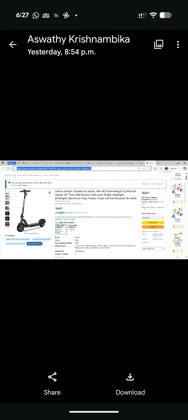 5Looking to sell my Gotrax electric scooter! It's in great shape and ready for a new owner. Here are some details: - Speed Level: Gear1, 15.5 mph; Gear2, 20 mph - Battery Type: Lithium-ion battery - Battery Capacity: 17 Ah - Max. Range: Approx 45 mile - Charging Time: Approx 6 Hrs - Wheel Size: 10" Pneumatic Tires - Max Rider Weight: 120kg/264lbs - Braking System: EABS + Disc Braking Originally bought for $949.99