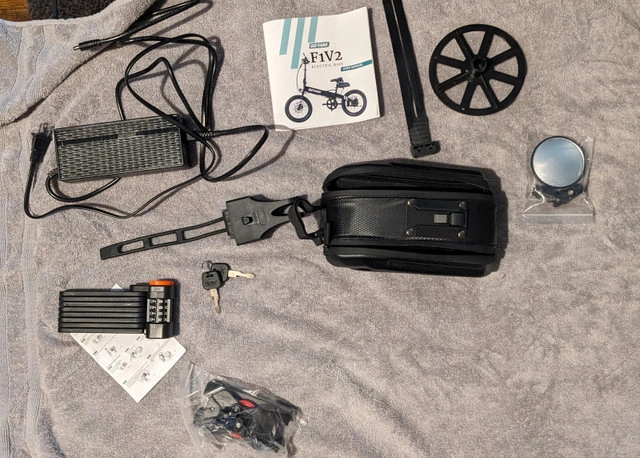 I bought this recently but it doesn't suit my needs (too big for me). Brand new, ridden less than 5km. Purchased in September 2025. All original components on it plus a few accessories I haven't attached: mirror, bag, a lock I can't figure out how to open, cell phone holder, keys for the battery compartment, original charger. Haven't even removed the pedal stickers. It's a great bike, but as I live on the second floor apartment and would have to carry it up and down daily, it doesn't work for me. Cash or e-transfer only. Pickup only at Greenwood station.