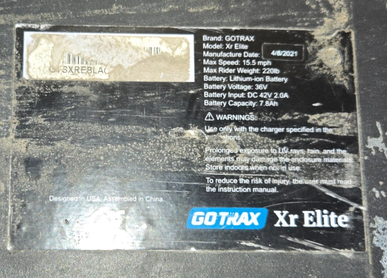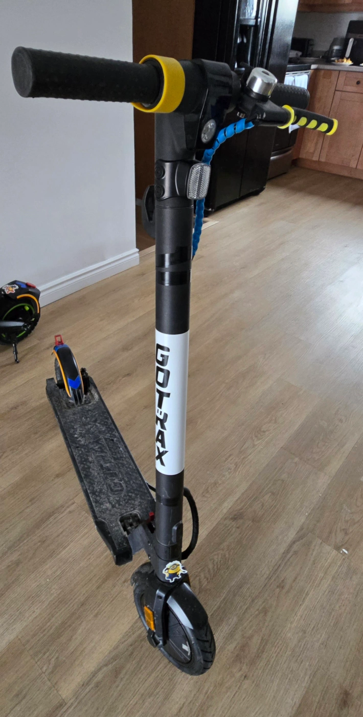 Used GOTRAX XR Elite electric scooter. Good condition. Includes charger. Some minor wear and tear. 350W motor, aluminum alloy frame, cruise control, foldable escooter, 8.5” pneumatic tires, 15.5 mph 25km/h top speed, 16 miles 26 km distance, LED display.