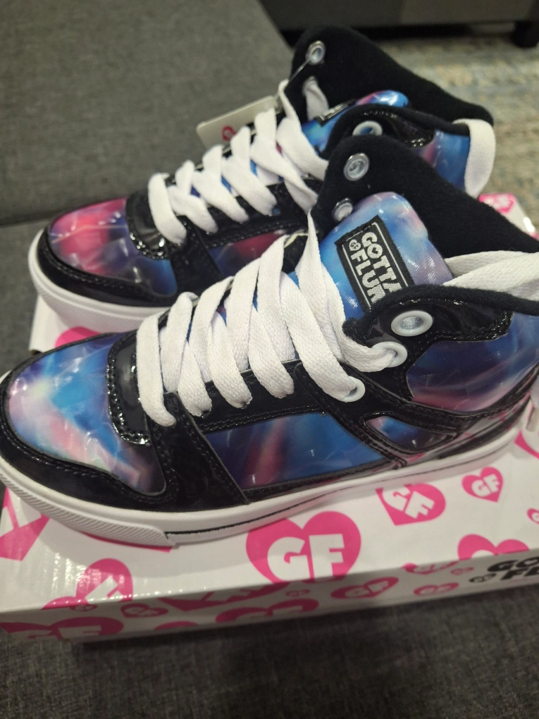 These Gotta Flurt Girl's Hip Hop V dance sneakers are brand new and ready to go! They feature a cool blue and black design. Comes with the original box size available 11,12,13,1,2
