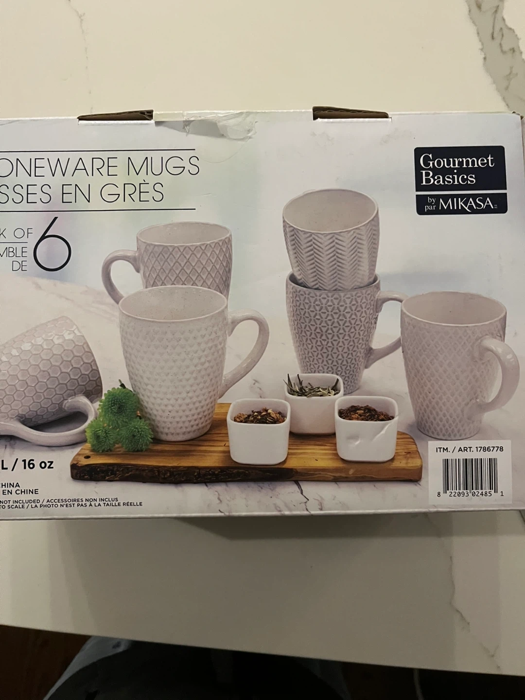36Selling a set of 6 Gourmet Basics by Mikasa stoneware mugs! These mugs are in great condition and come in their original box. They each hold 470 mL / 16 oz and feature a lovely textured design. Perfect for enjoying your favourite hot beverages! Pick up location Yonge Yonge and Steels