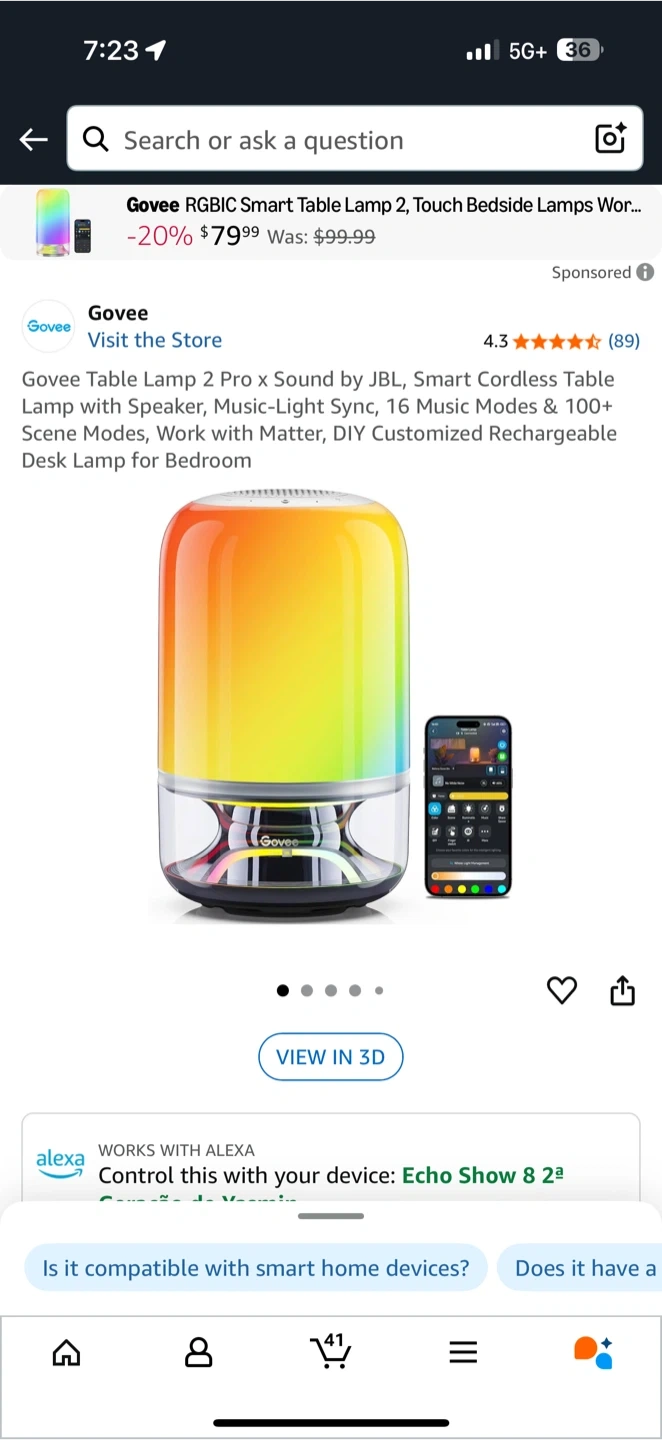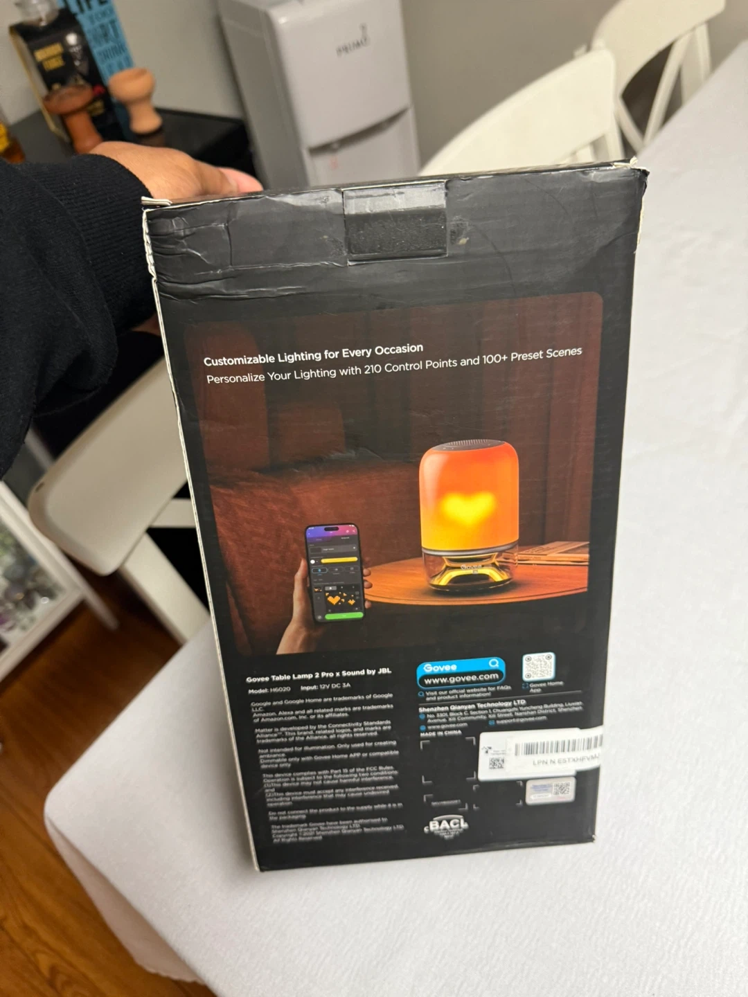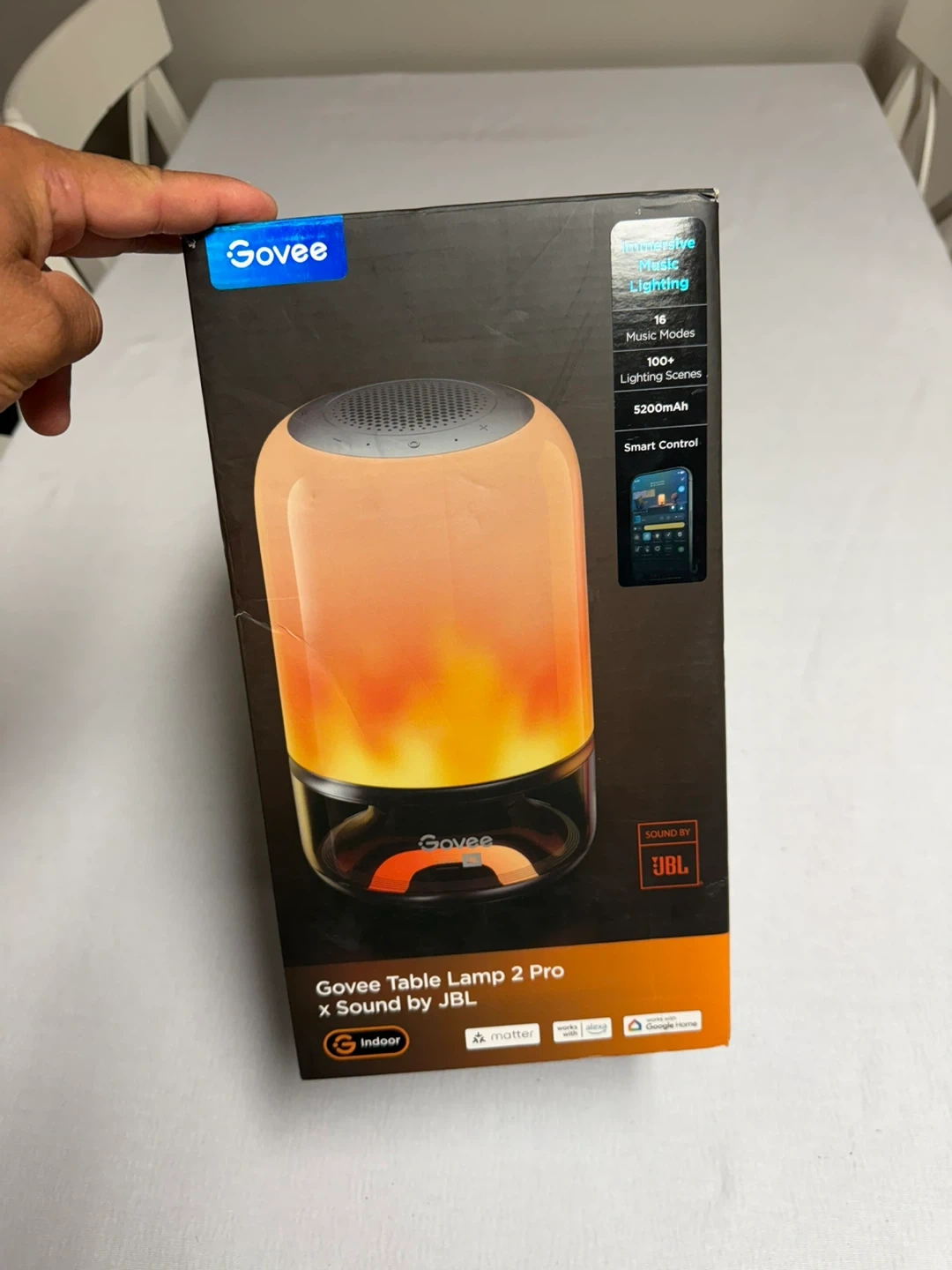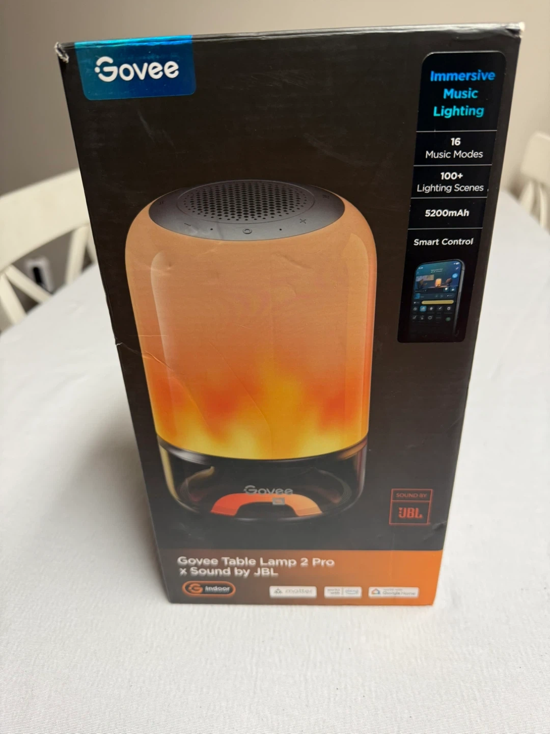 Selling a Govee Table Lamp 2 Pro x Sound by JBL. This is an RGBIC smart table lamp with speaker and music-light sync. It has 16 music modes and 100+ lighting scenes. Comes with immersive music lighting and smart control. The box is included!