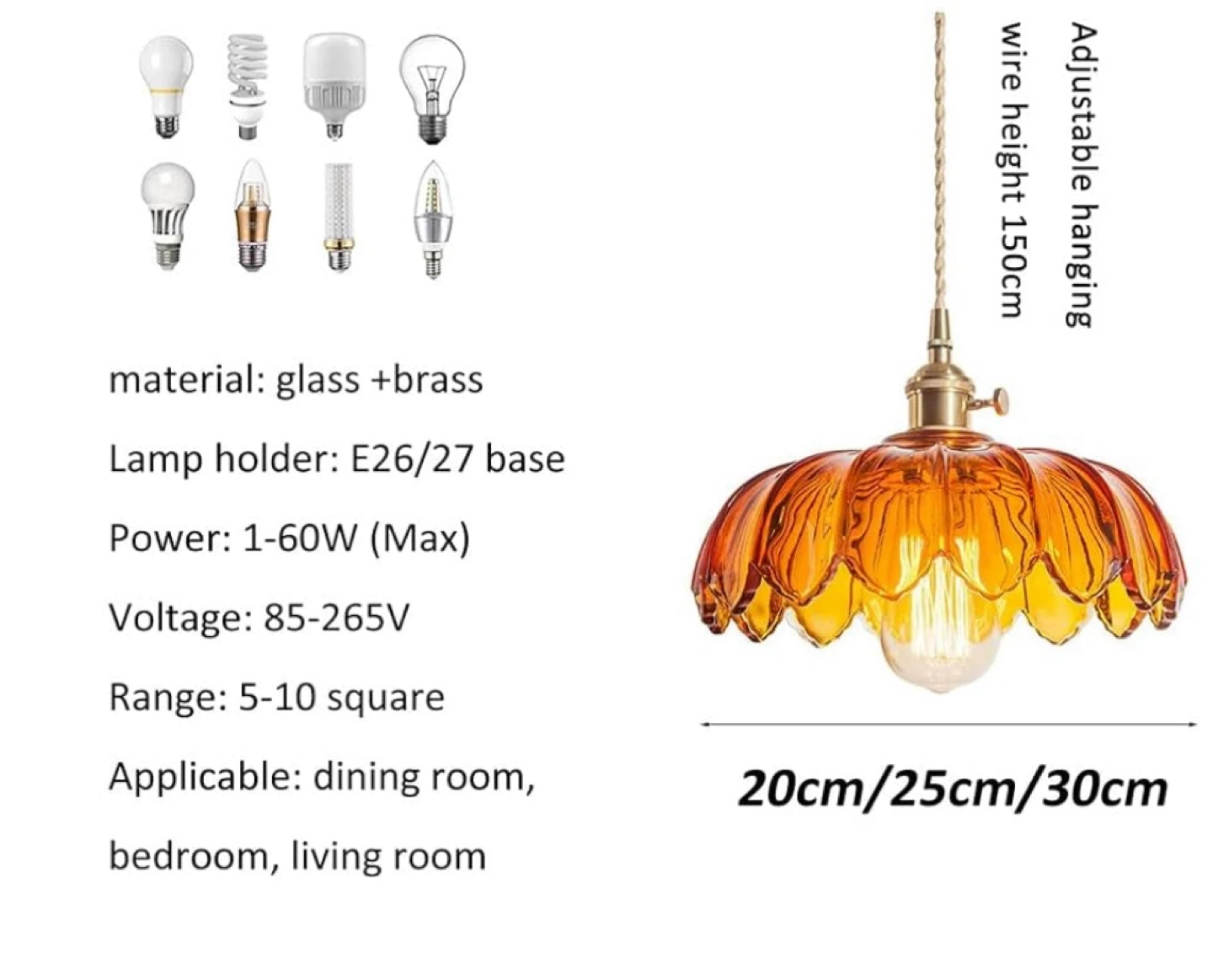 Light source type: adopts international standard E27 lamp socket, low power consumption, less heat and energy saving. 95%. Various E27 light sources (Edison bulbs, LED bulbs, incandescent bulbs, energy saving bulbs) can be used, and they are easy to replace and maintain. (Excluding bulbs)