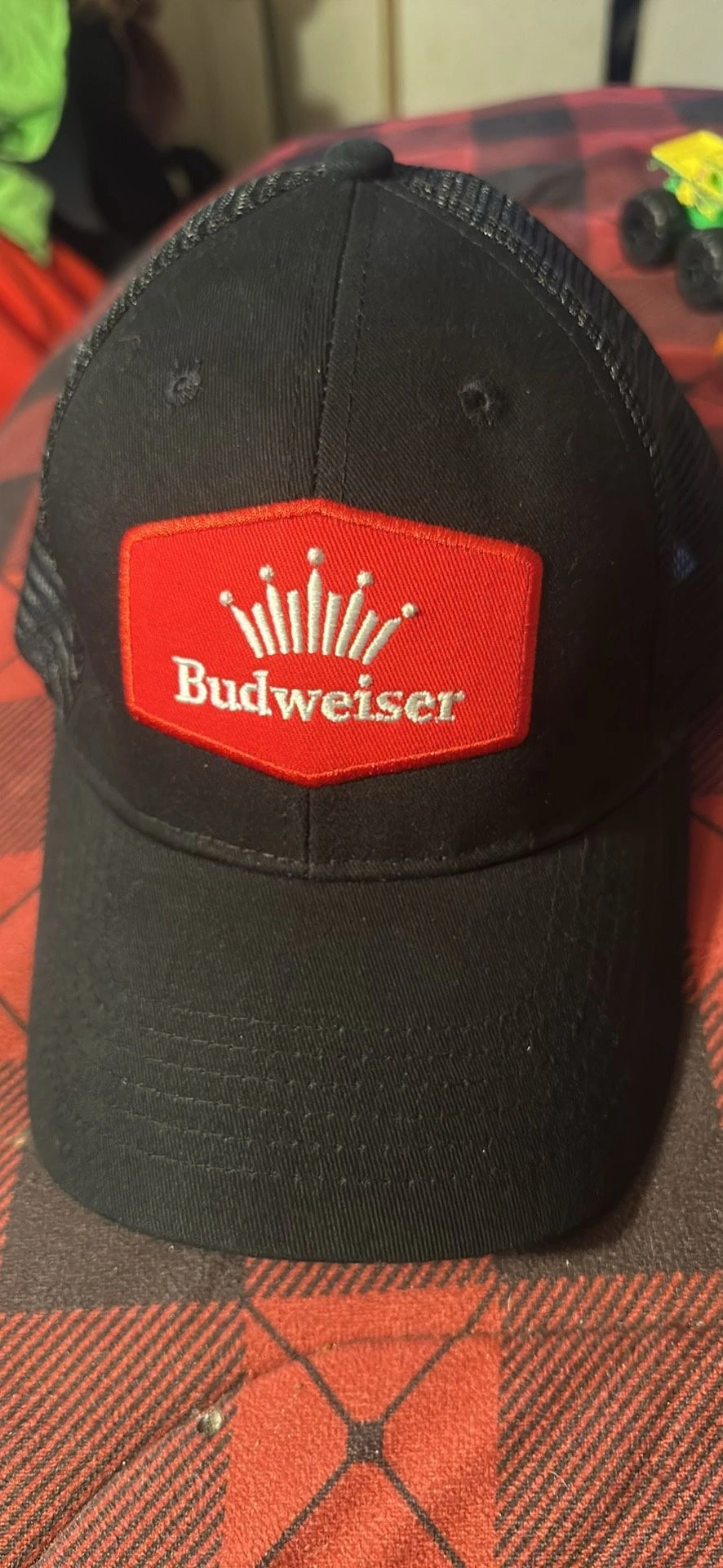 Buy & SellBlack Budweiser Trucker HatBlack Budweiser Trucker Hat$20Black trucker hat with red Budweiser patch on front and mesh back. Has a few small holes.WHERE TO MEETMcDonaldView MapSELLERverifiedEdwin RaulSoundview974 reviews0 chats·0 favorites·0 viewsSEND CHAT TO SELLERHi Edwin Raul! I’m interested in your listing.Hi Edwin Raul! I’m interested in your listing.Get the Karrot app to chatSign In to chat