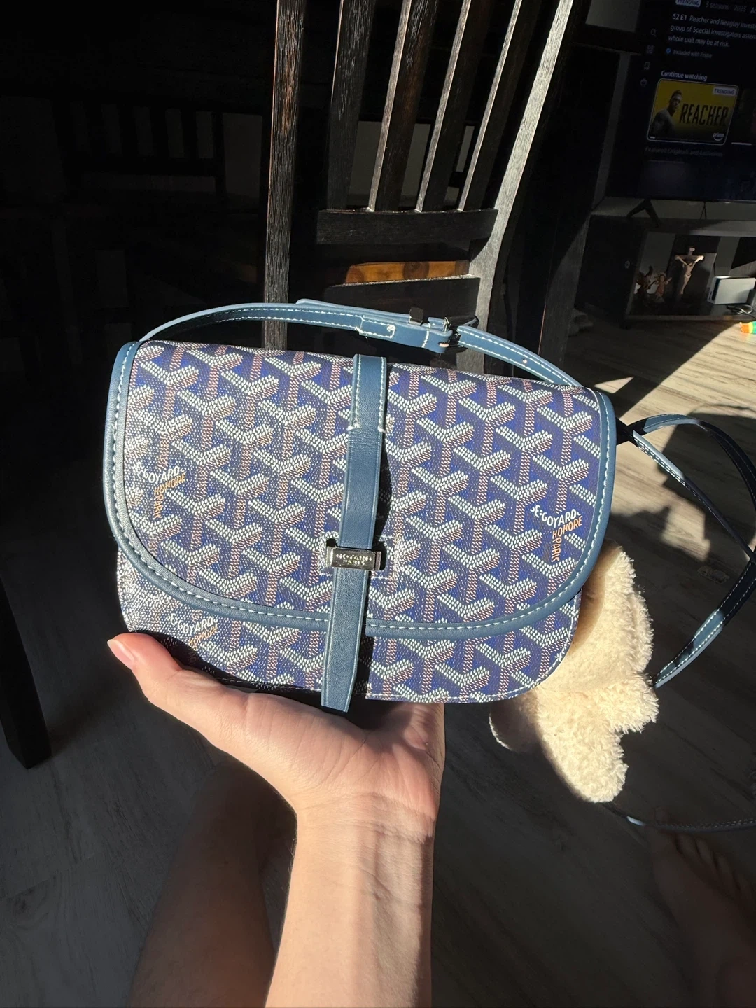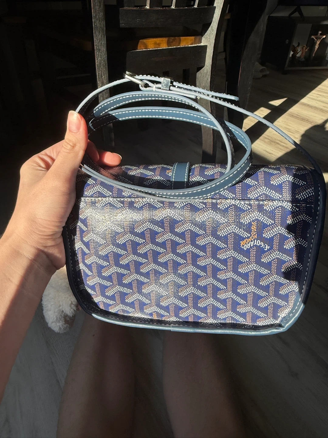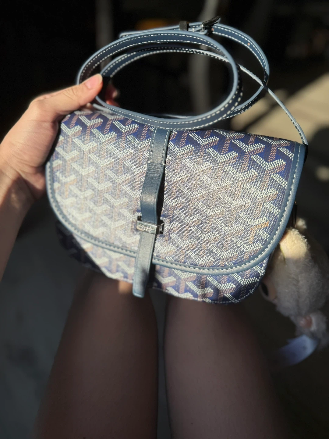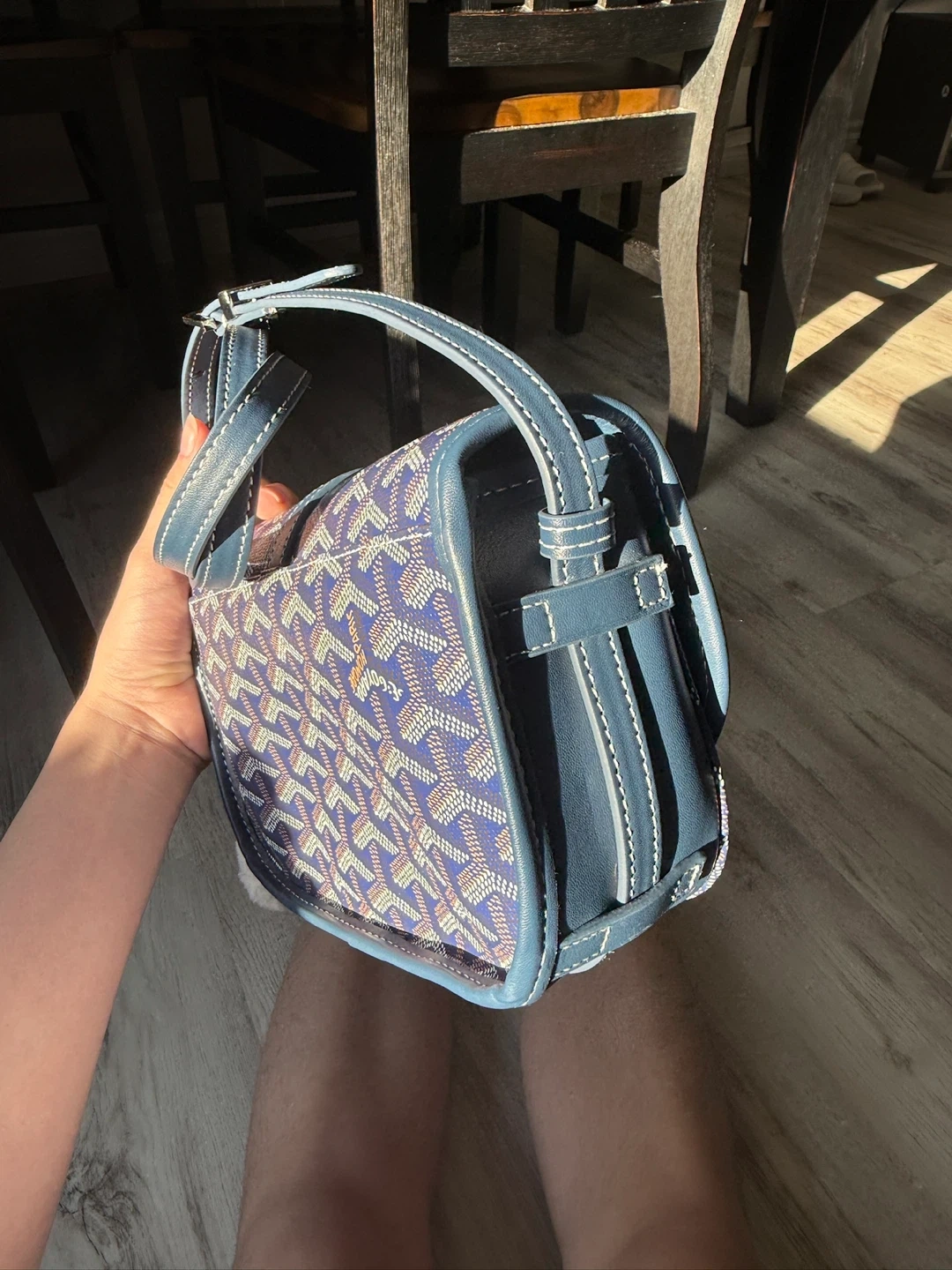 Selling a Goyard Belvedere bag in blue. It has not been used; it comes with its original storage bag. It's in great condition and ready for a new home! This stylish bag is perfect for carrying your essentials with a touch of luxury