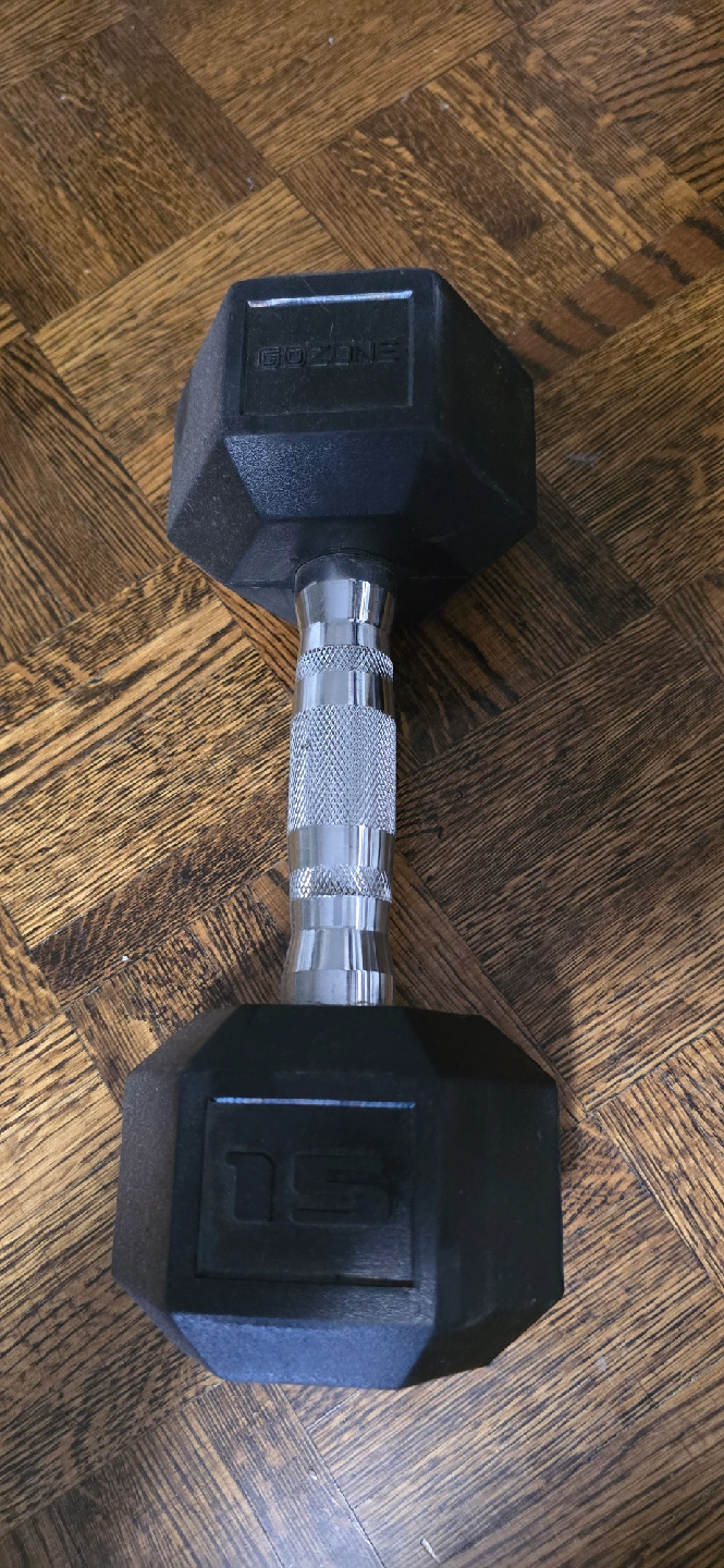 Selling a GoZone 15lb dumbbell. It's in great condition and ready for your home workouts!