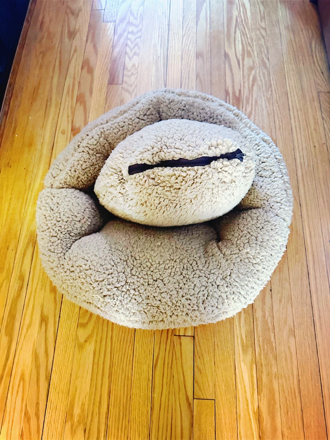 Soft, sherpa-lined pet bed with a plush bolster. It's great for small to medium-sized pets looking for a comfy spot to rest. Zipper closure for easy washing. Machine washable cover.