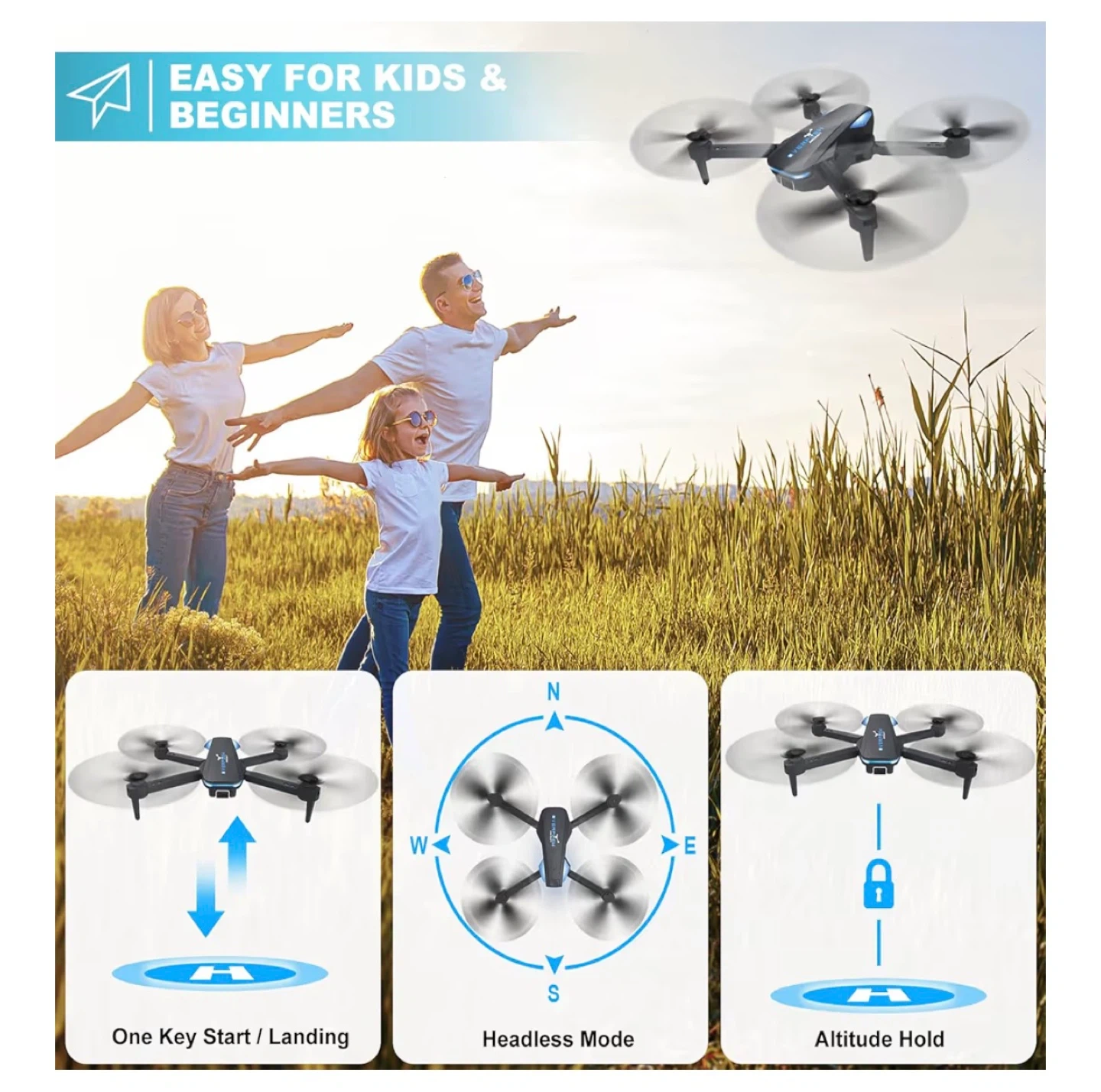 This TizzyToy drone offers beginner-friendly operation with one-button take-off/landing and altitude hold. It's designed for stable flight and better wind resistance. This set includes the drone and a remote controller.
