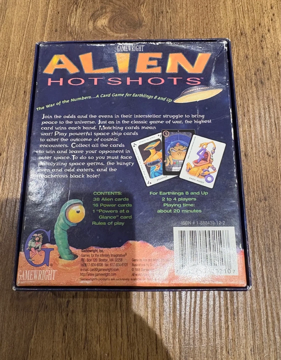 Join the odds and the evens in their interstellar struggle to bring peace to the universe. Just as in the classic game of war, the highest card wins each hand. Matching cards means war! Play powerful space ship cards to alter the outcome of cosmic encounters. Collect all the cards to win and leave your opponent in outer space. To do so you must face paralyzing space germs, the hungry even and odd eaters, and the treacherous black hole!