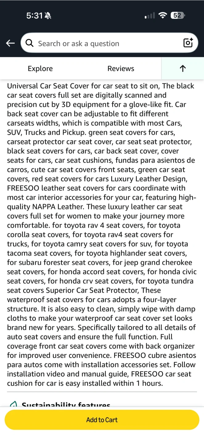 Great upgrade for interior — sporty look, comfortable, protective, durable.