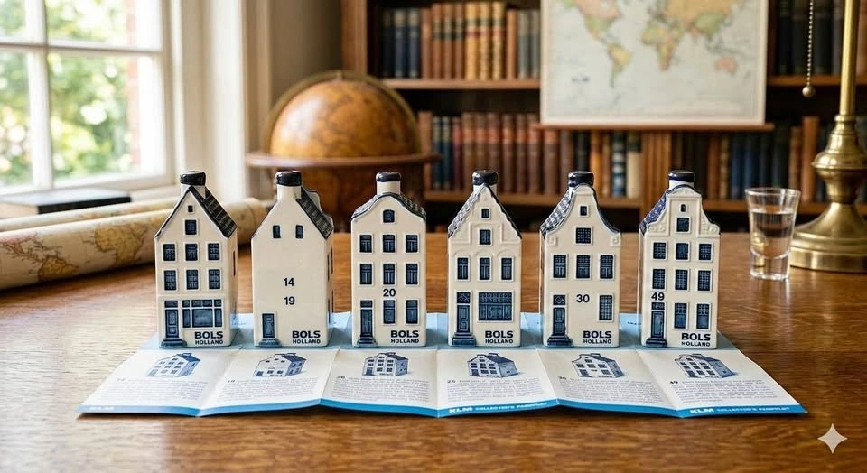 Vintage KLM Delft Blue Houses - Sealed Bols Gin Miniatures (Set