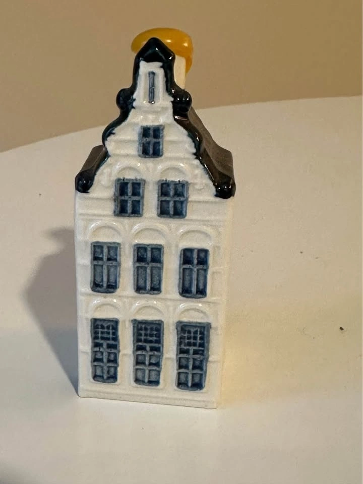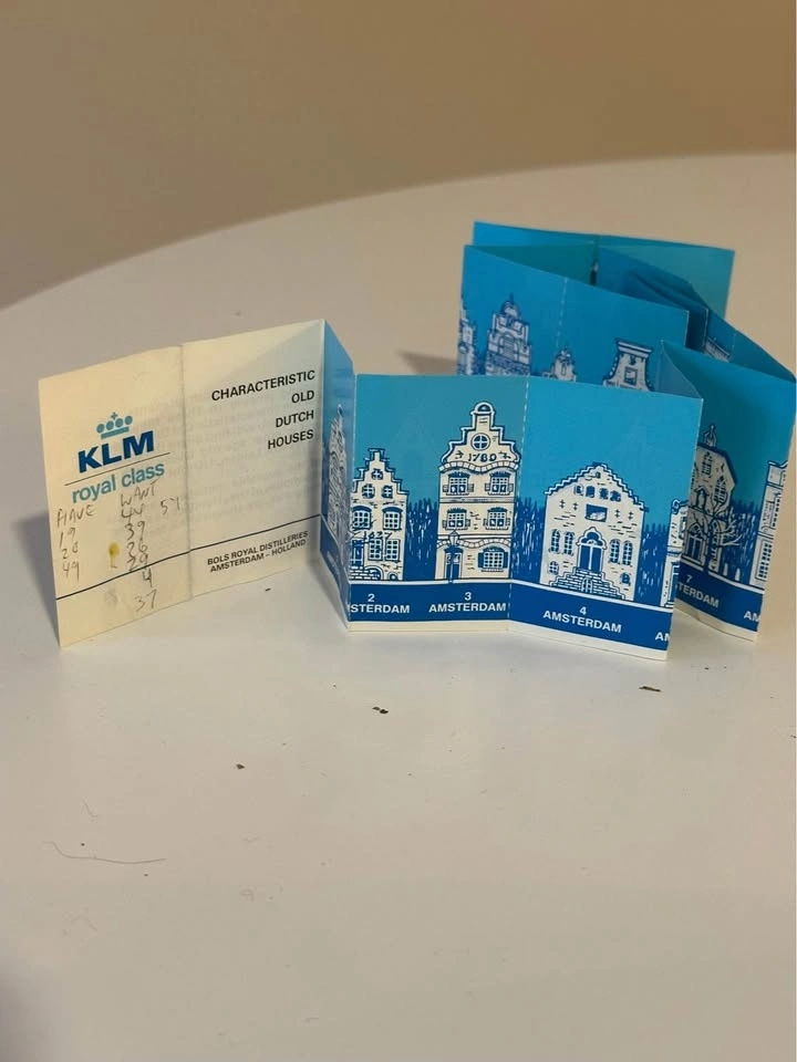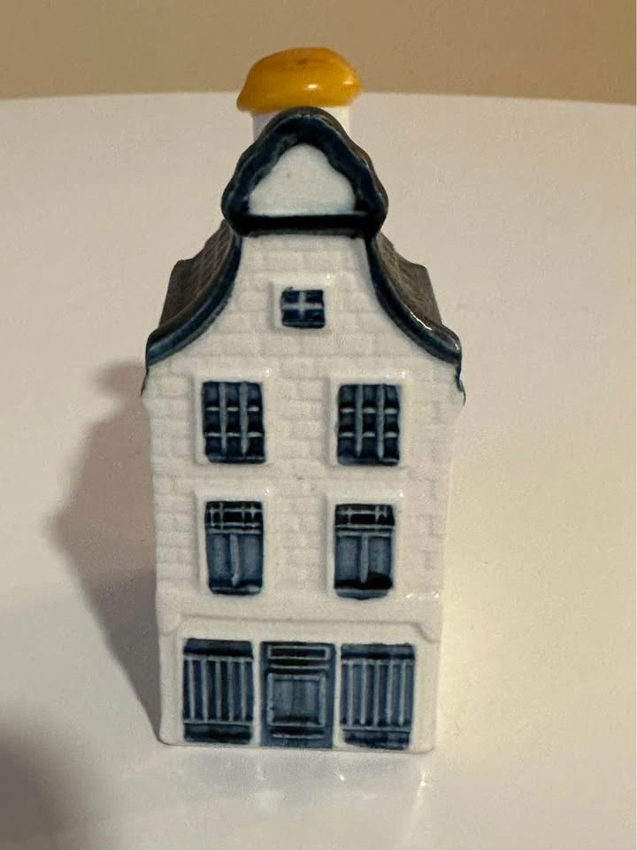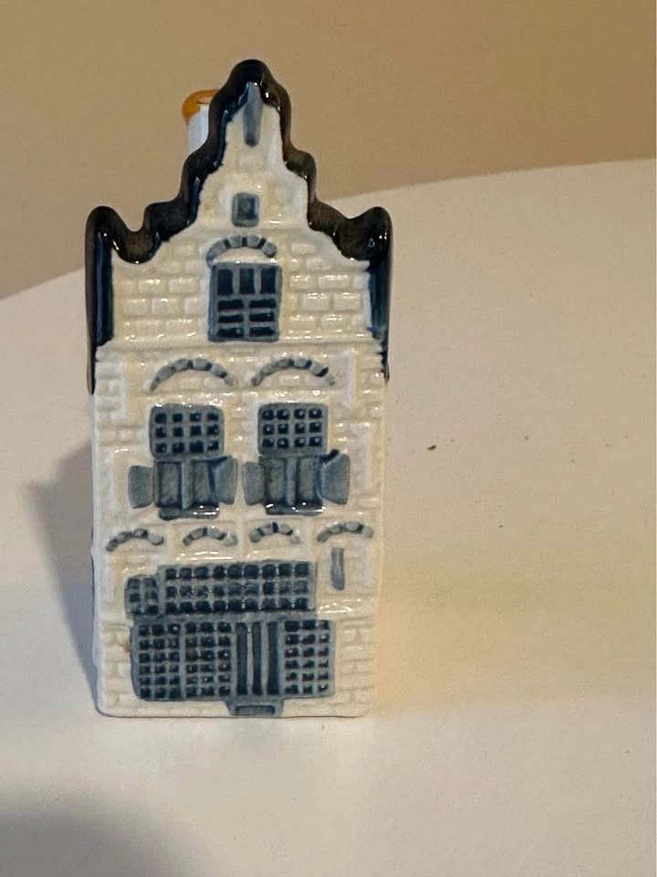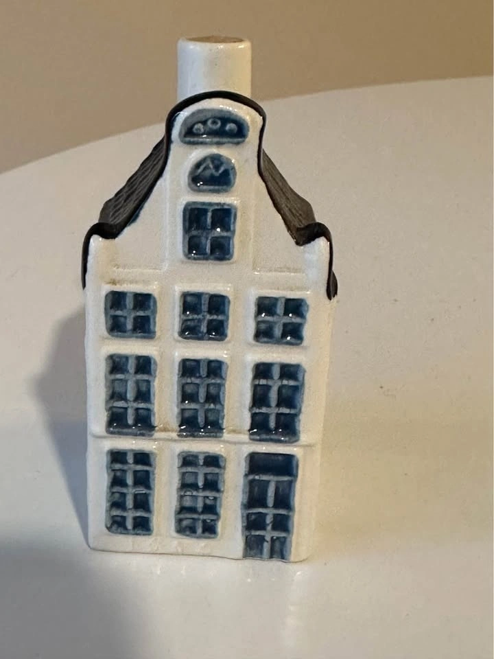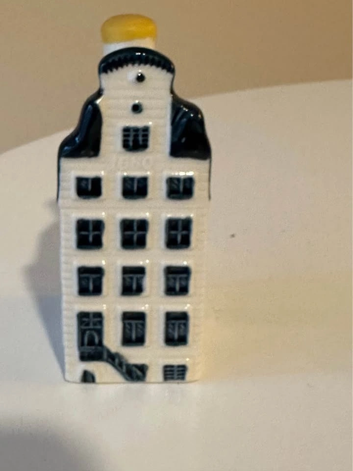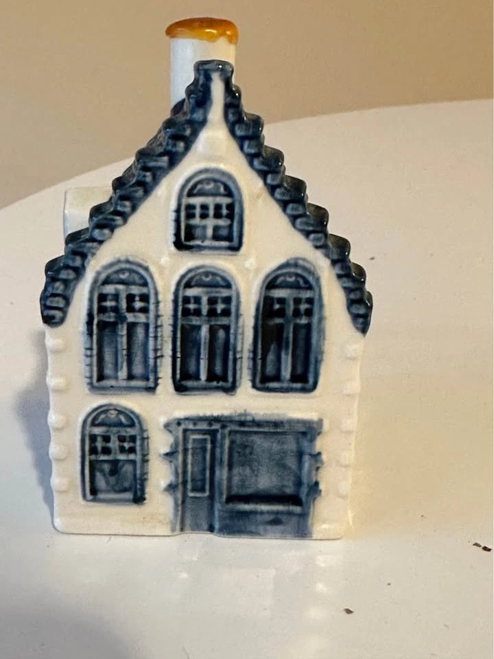 Rare opportunity to own a set of 6 authentic KLM Royal Dutch Airlines Delft Blue miniature houses, produced by Bols Royal Distillery and exclusively available to Business Class passengers. Excellent vintage condition with no chips or cracks. All six houses are still sealed with the original cork (5 have a wax or wax-like seal, and one has cork only as originally produced). Three contain the original Bols Dutch Genever (Gin), and the Genever has dried up in the other three as often happens. These have been well-preserved and include the original collector’s pamphlet. House Numbers Included: #14: Daendels House (Elburg), #19: Boerhaave House (Leiden), #20: Edam Museum (Edam), #25: Teylers Museum (Haarlem), #30: Hippolytusbuurt 8 (Delft), #49: University of Amsterdam (Amsterdam). Made in Holland by Bols Royal Distilleries. Pickup available in Bucktown (Chicago). Price: $20. Cash only.
