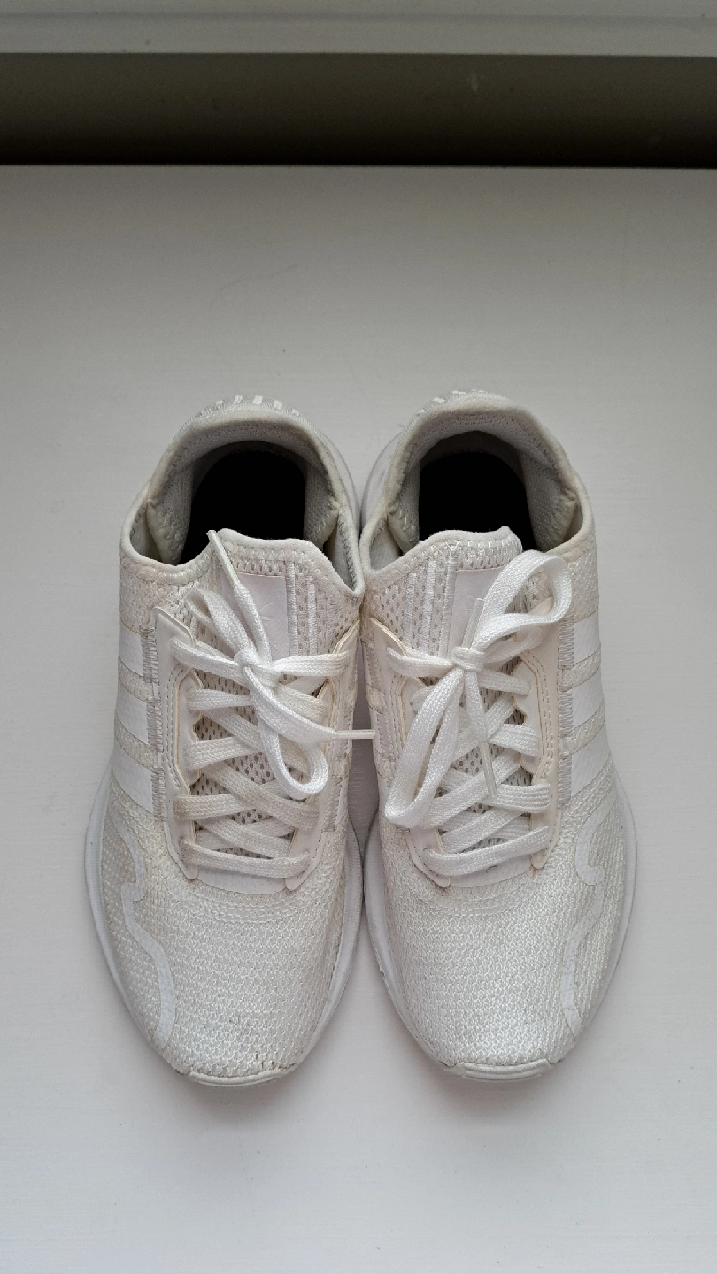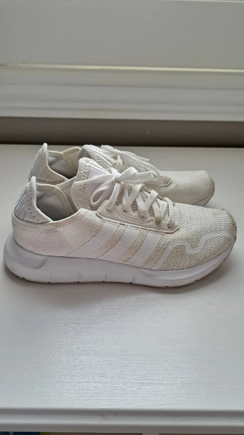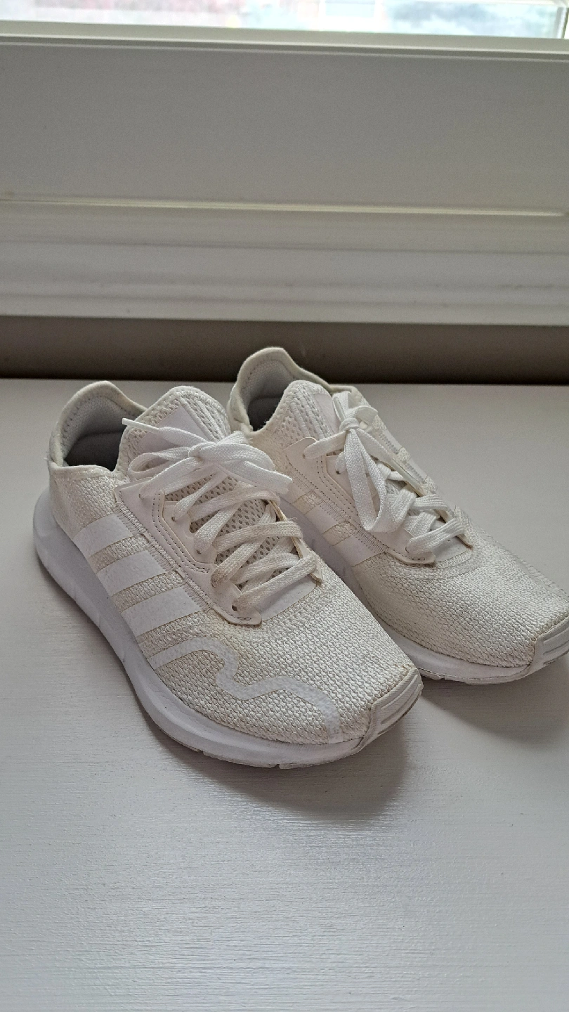 Selling a pair of Adidas Swift Run 22 sneakers in white! They are a women's size 5.5 (US). These are great for everyday wear or light workouts. They do show some signs of use.