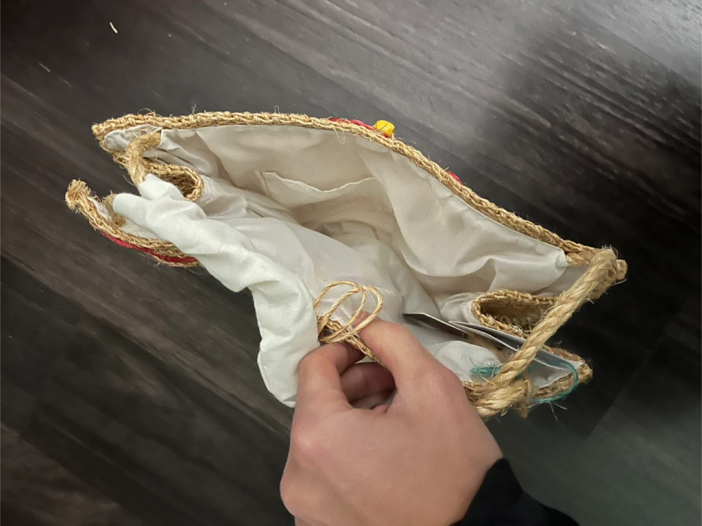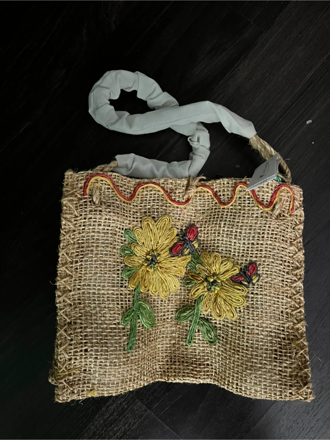 Handmade Ixtle Cactus Fiber Woven Bag with Embroidered Flowers