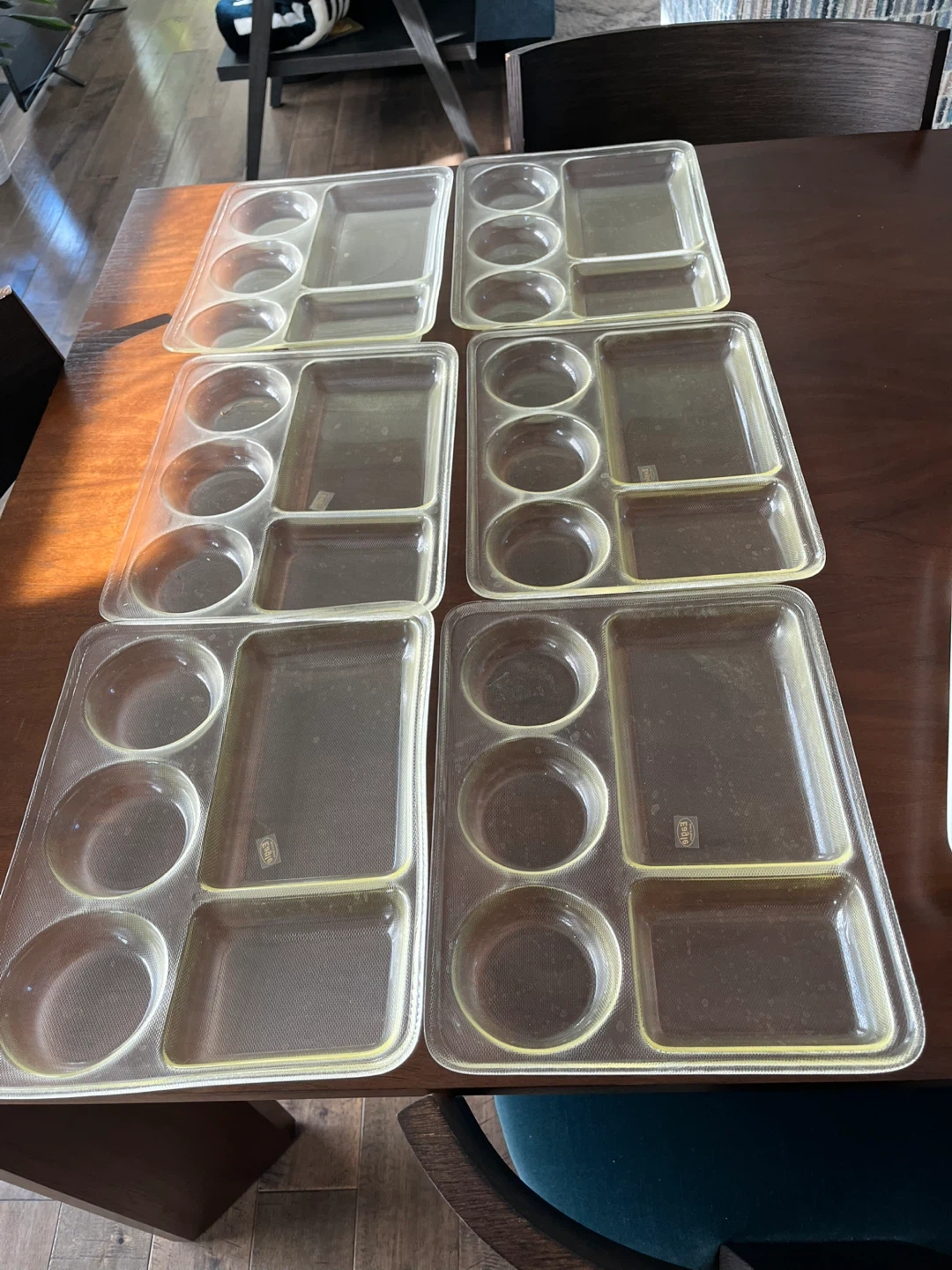 Set of 6 Clear Plastic Divided Serving Trays