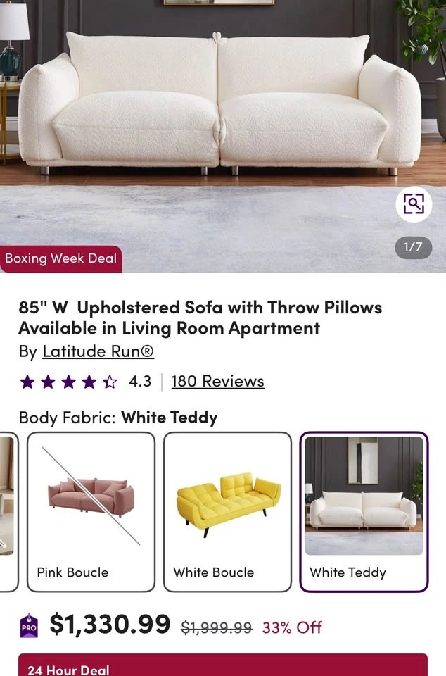 Lambswool Denetrice 86.5" sofa. Purchased last November. Smoke and pet free home. Located in Mount Pleasant.