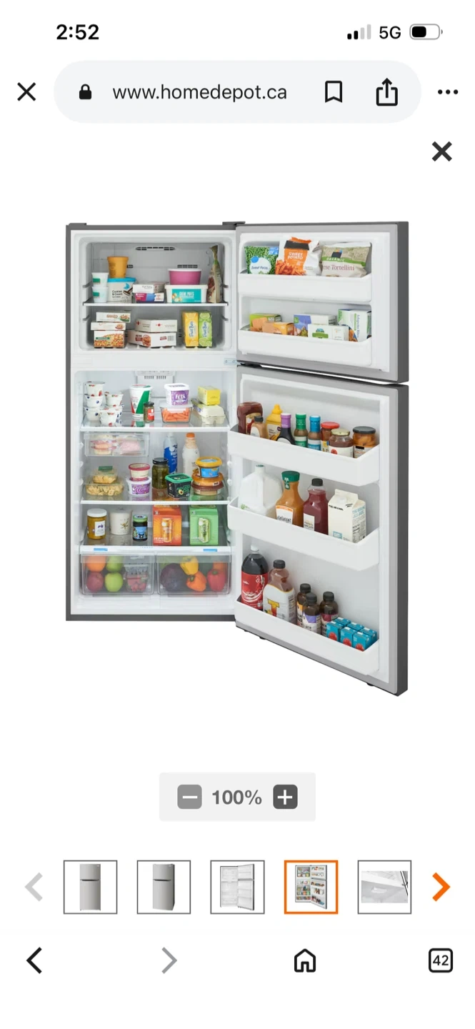 This is a Frigidaire stainless steel top freezer refrigerator. It features adjustable shelving and spacious door bins. Perfect for keeping your groceries fresh!