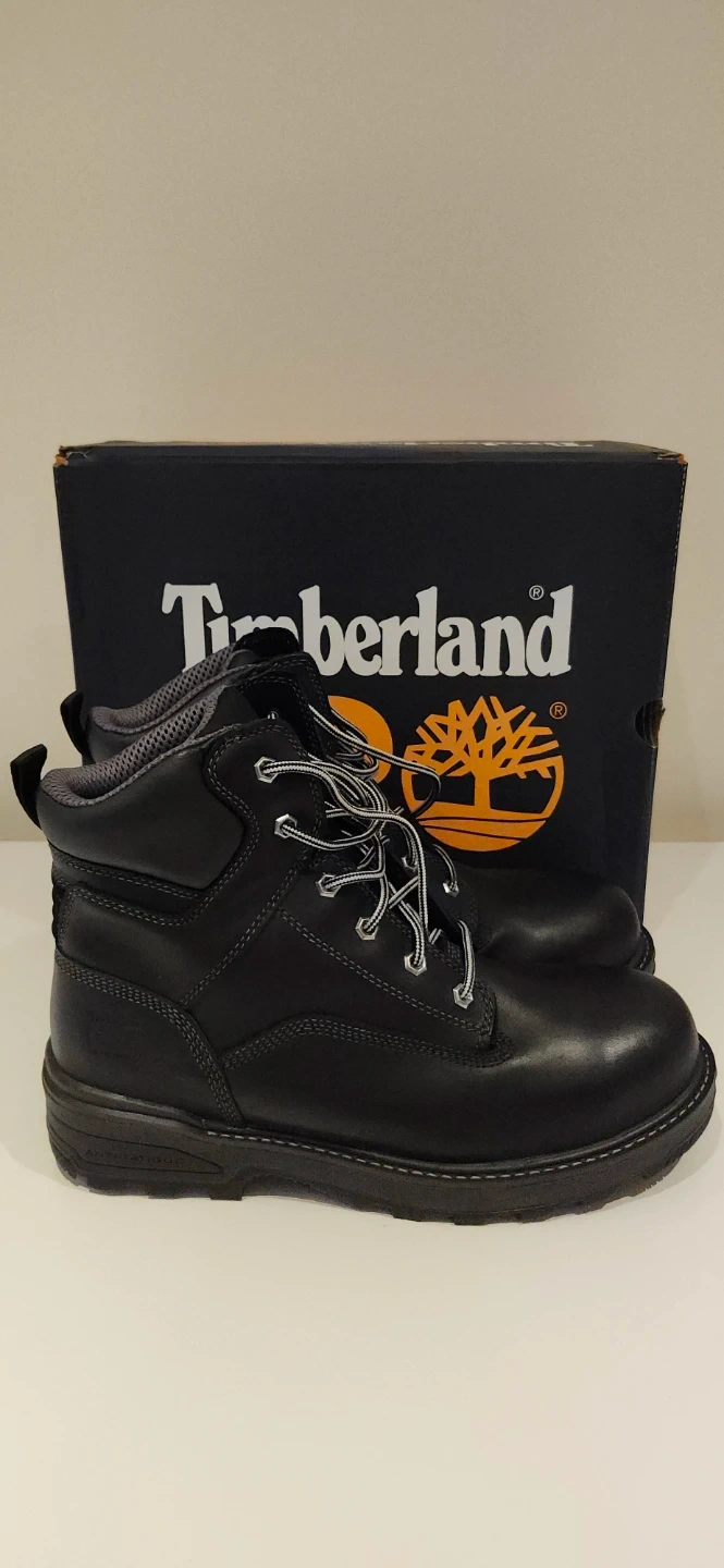 Brand new Timberland PRO Resistor 6" Composite Safety Toe work boots. Black leather construction. Includes original box. Size 10.5 W/L.