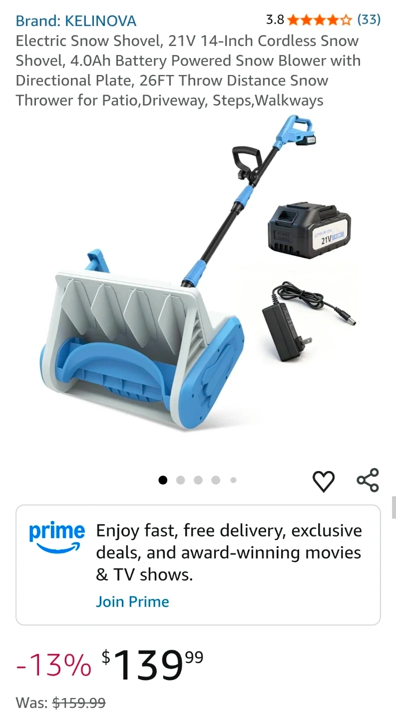 Kelinova Electric snow shovel with 21v battery and charger