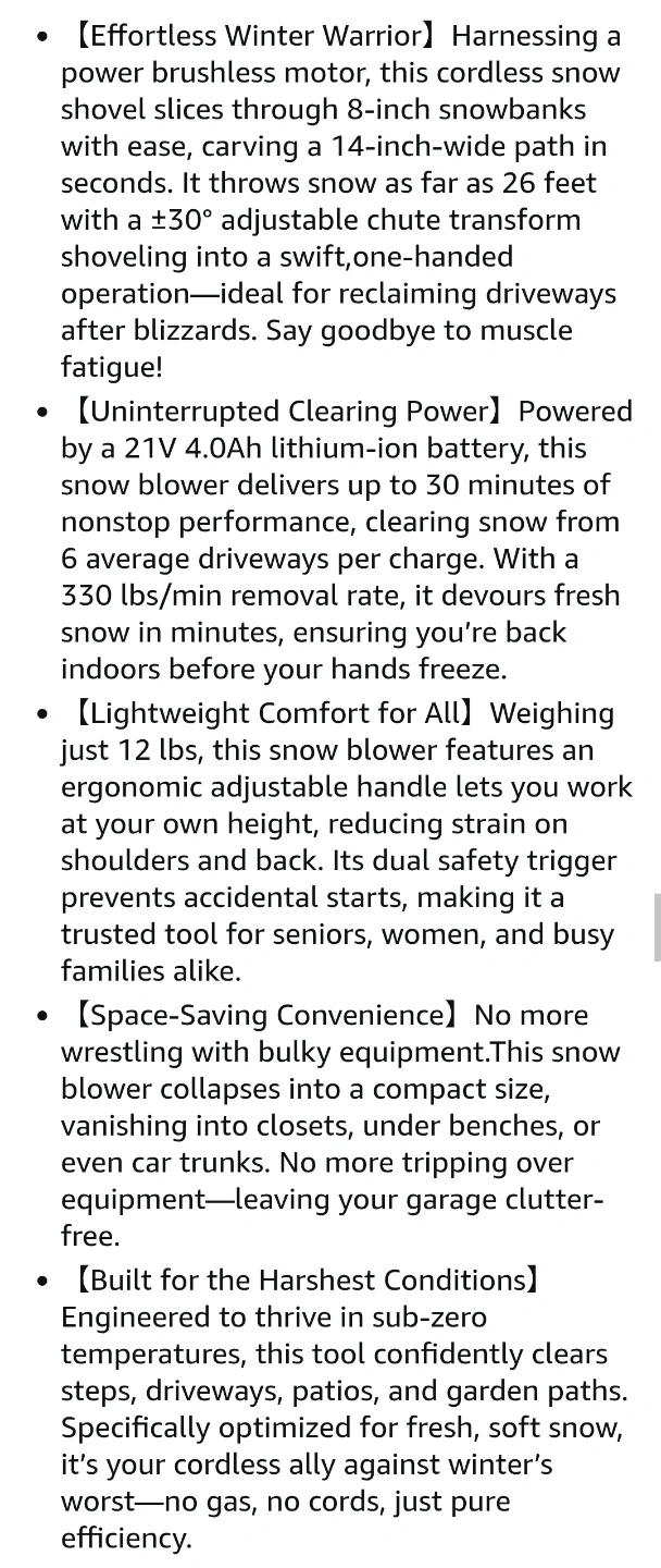 Make snow removal a breeze with this KELINOVA 21V 14-inch cordless electric snow shovel, featuring a 4.0Ah battery, directional plate, and a 26ft throwing distance. This snow shovel is in great condition, ready to tackle your patio, driveway, steps, and walkways.