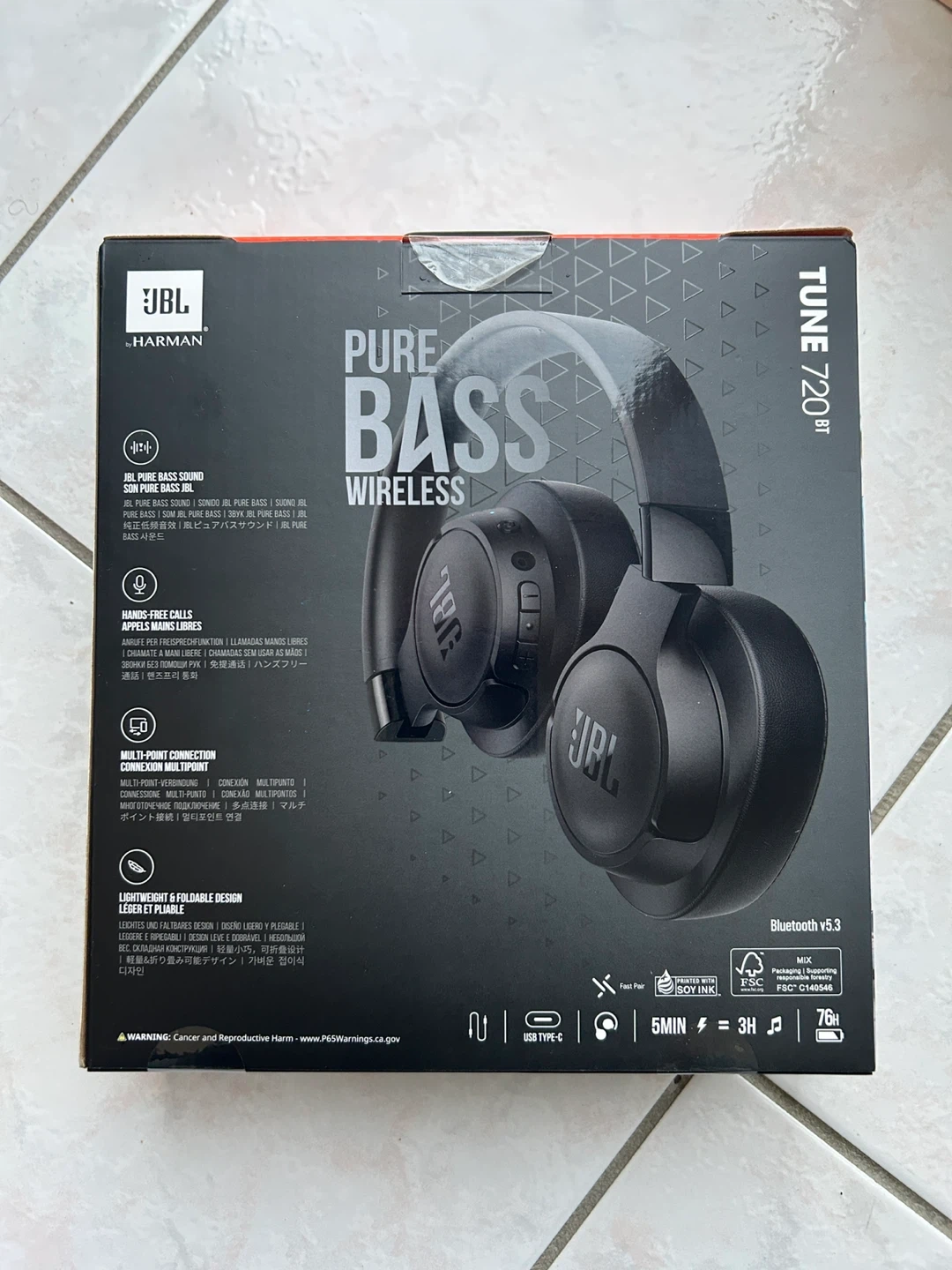 JBL Tune 720BT: pure bass sound, lightweight, foldable design. Up to 76 hours of usage time on a single charge