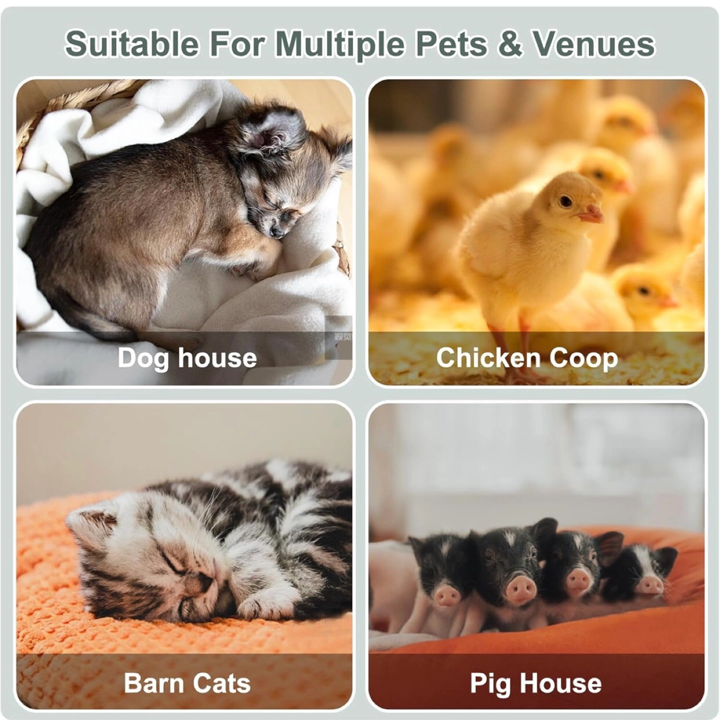 WIDE USE: Chicken coop heater is ideal for all kinds of pet enclosures, including dog kennels, cat cages, chicken coops, rabbit hutches, etc., very versatile and practical